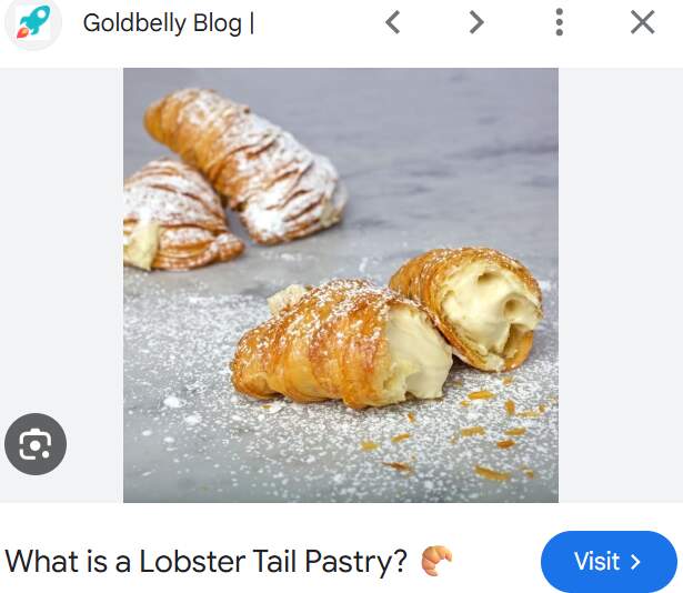 Very similar to sfogliatelle. A lobster tail is much larger, and filled with a pastry cream vs the ricotta-based cream mixture that a sfogliatelle is filled with. Lobster tail pastries are also filled after they’re baked. I think the type of pastry is different than the sfogliatelle pastry as well.