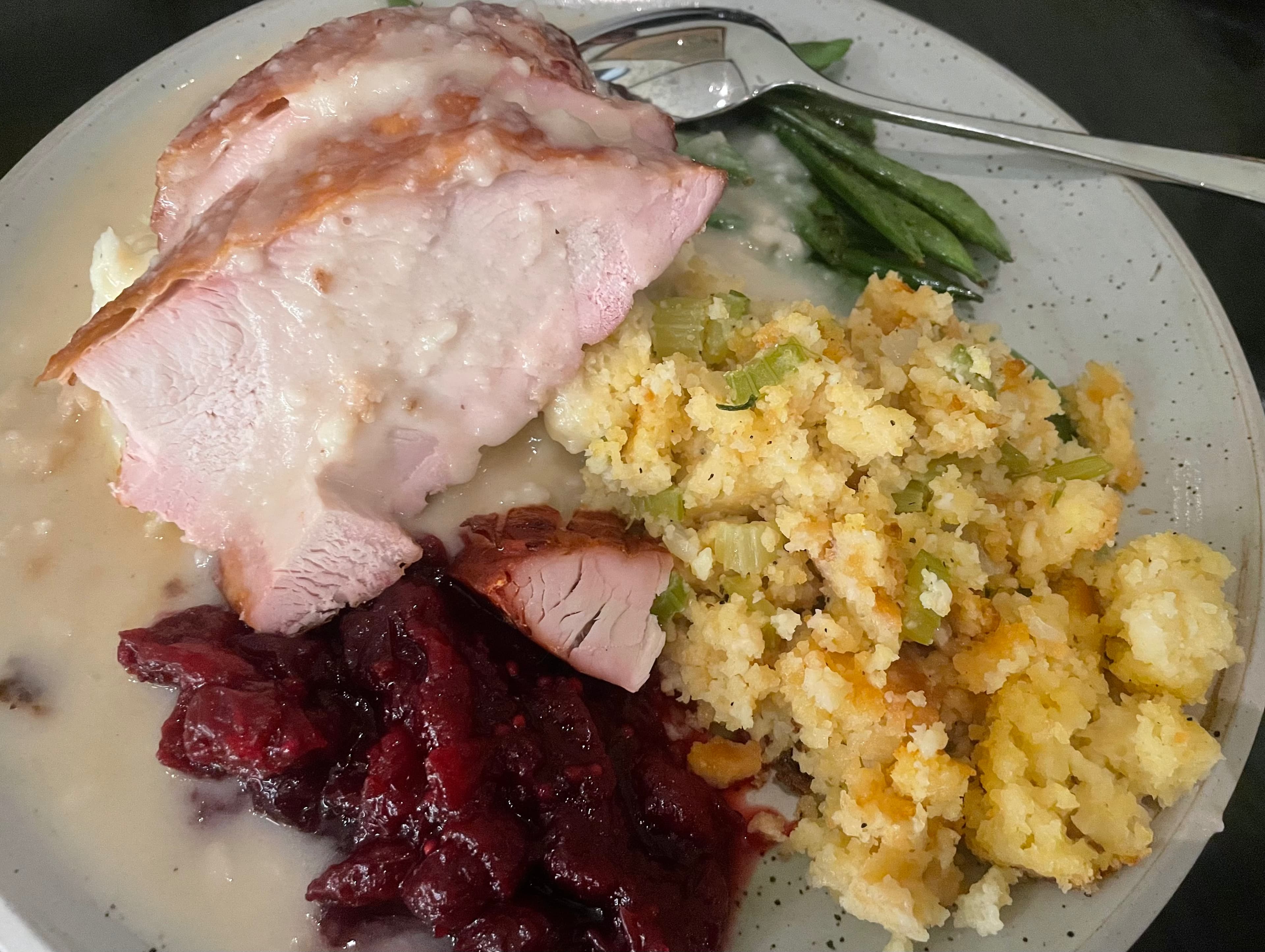 Mary’s organic somoma tom turkey, stuffing, mashed potatoes, haricot verts, housemade gravy, cranberry-orange compote