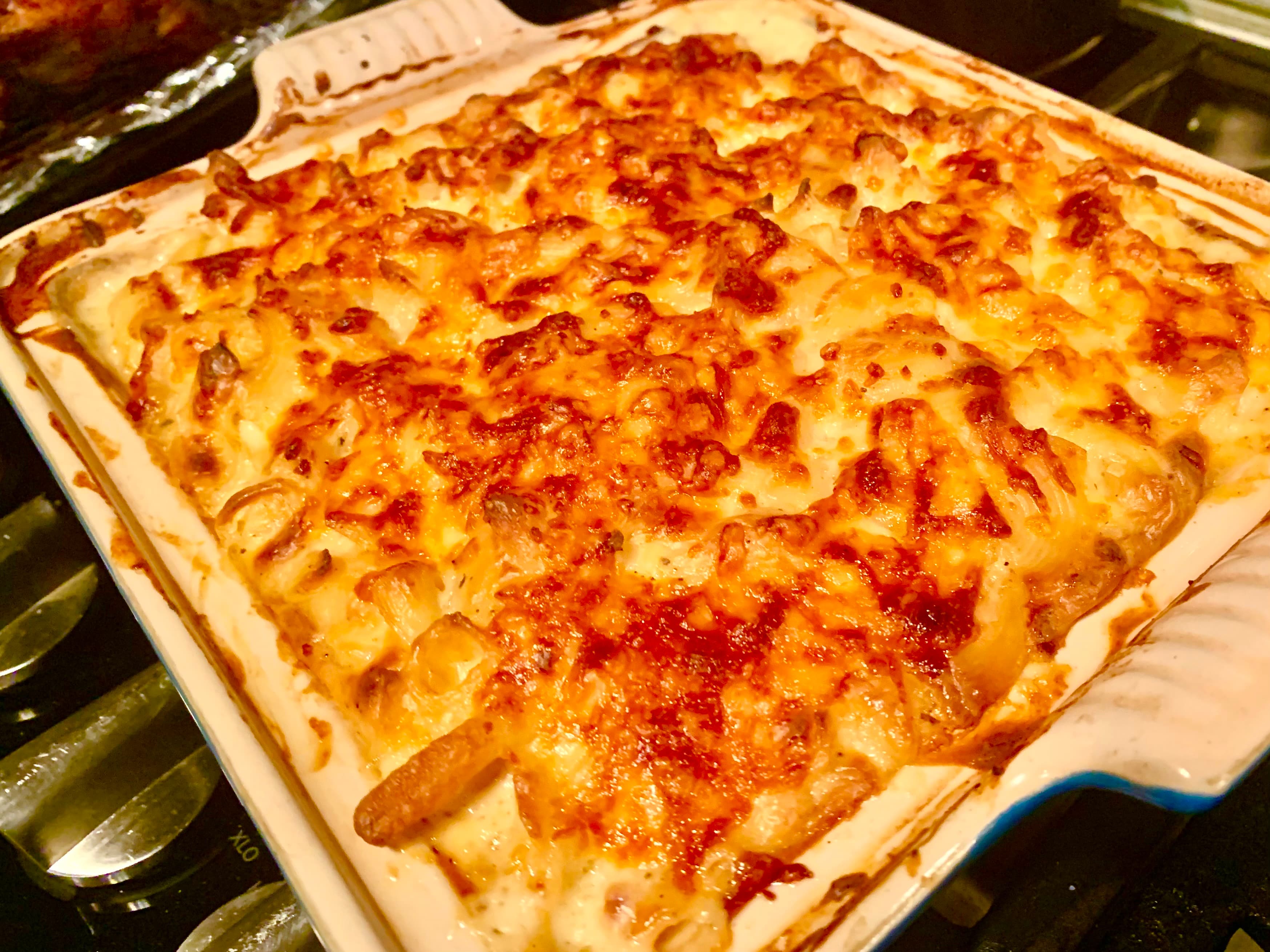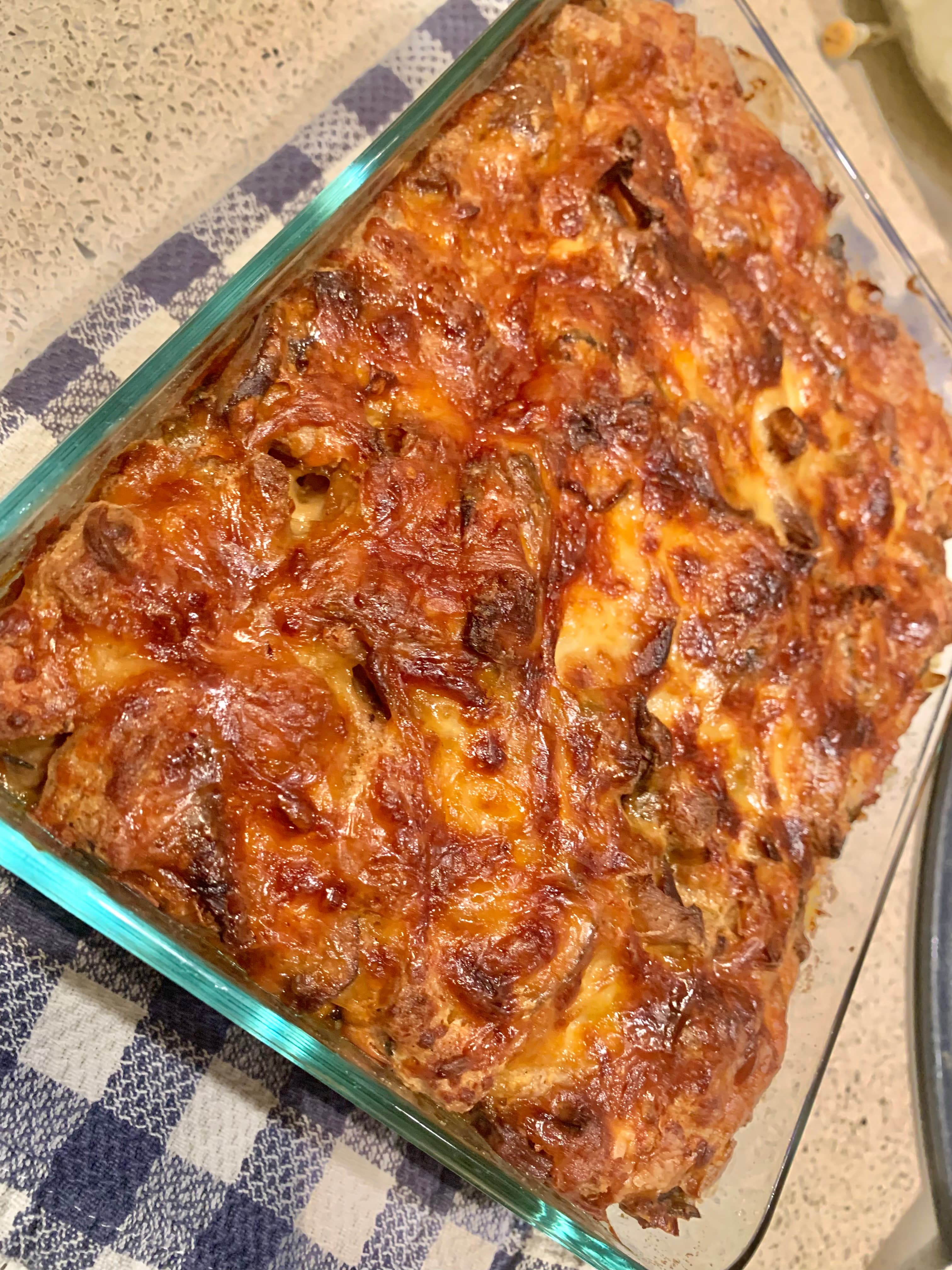 Interesting. None of the photos of the dish in a Google image search have melted cheese, but since everything is better with melted cheese, I’ll have to give it a try.