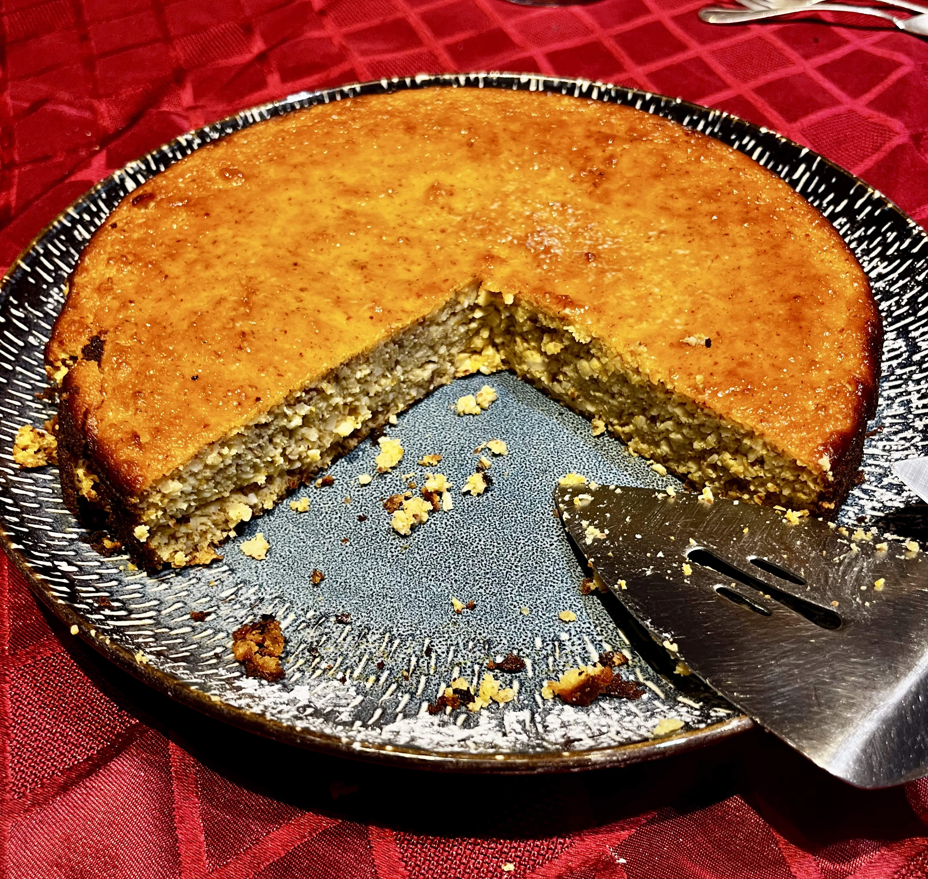 We took a little break before dessert: Claudia Roden’s wonderful orange & almond cake, as well as Biscoff ice cream for which I was going to throw together a quick boozy berry sauce (frozen berries, butter, brown sugar, bourbon), but everyone thought “just” the cake ad ice cream would suffice. It did.