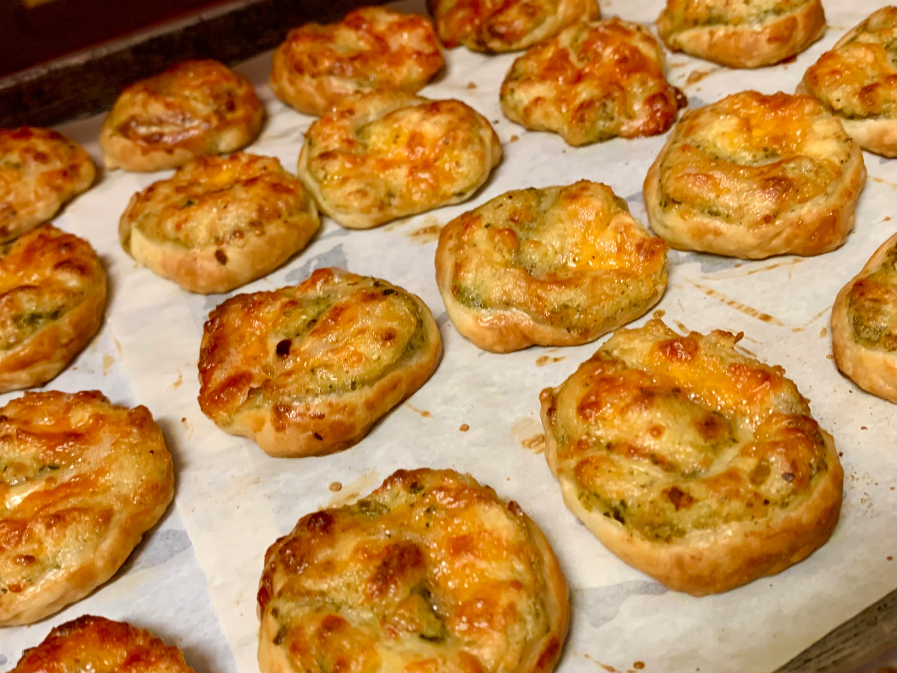 Kenai / jalapeno cheddar dip puff pastry spirals