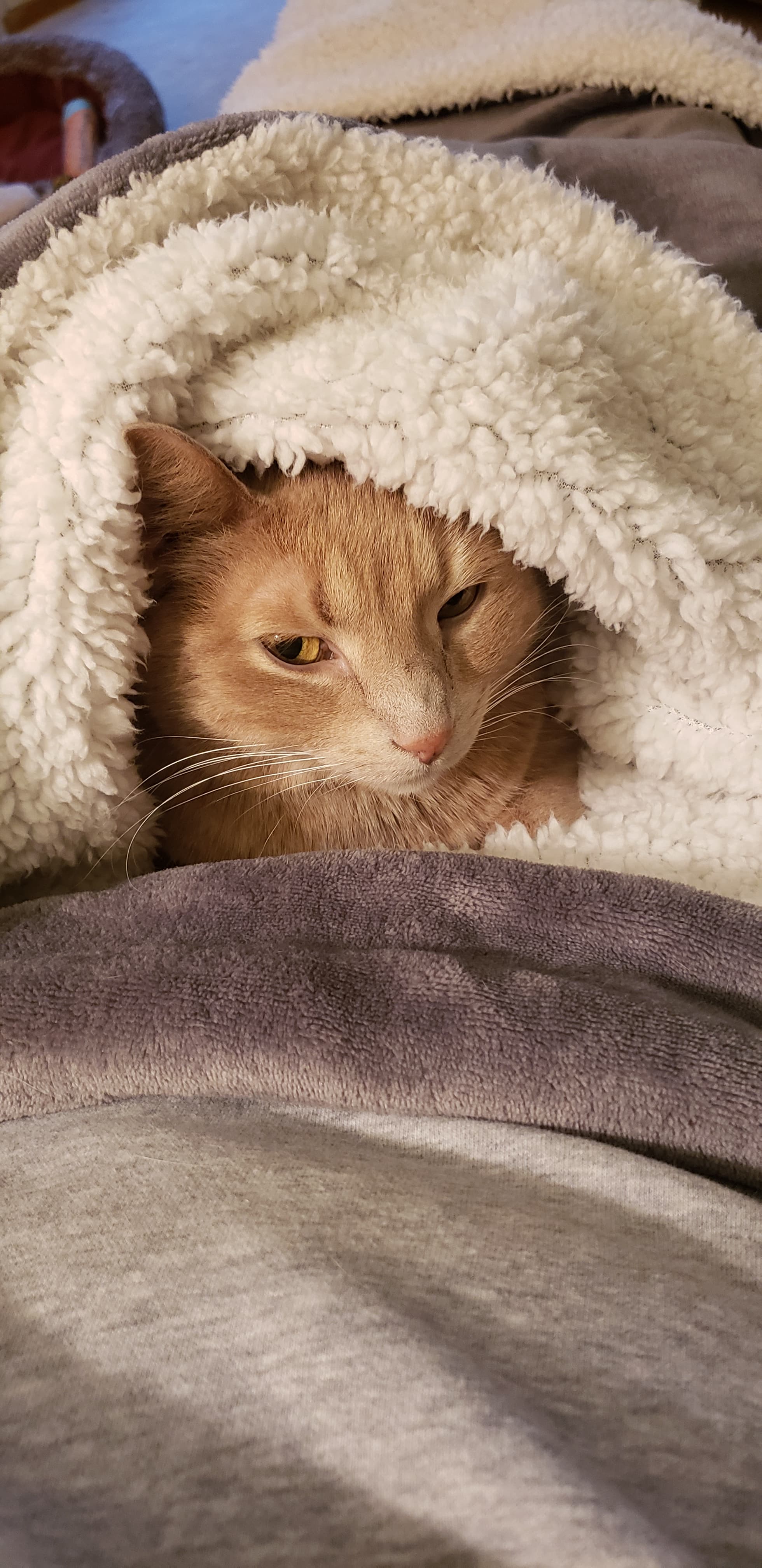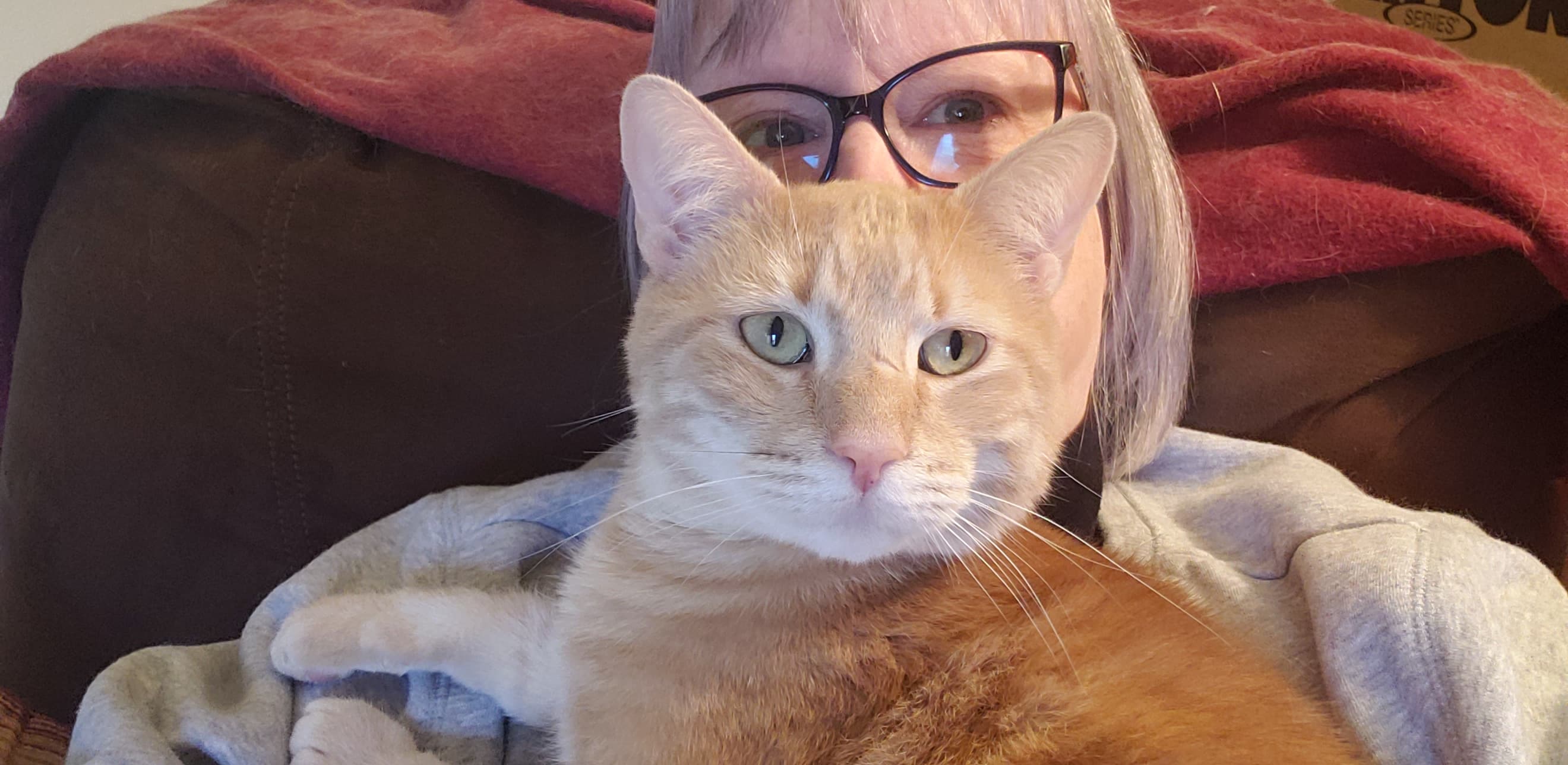Pics of lap naps from Murphy in the a.m. (well, a chest cuddle from him) and Finnegan in the afternoon.