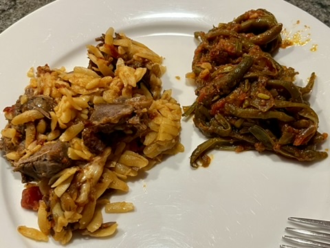 After the last emotionally exhausting 24 hours we had dinner unusually early: Thanksgiving leftovers, i.e. youvetsi, fasolakia, fennel salad.