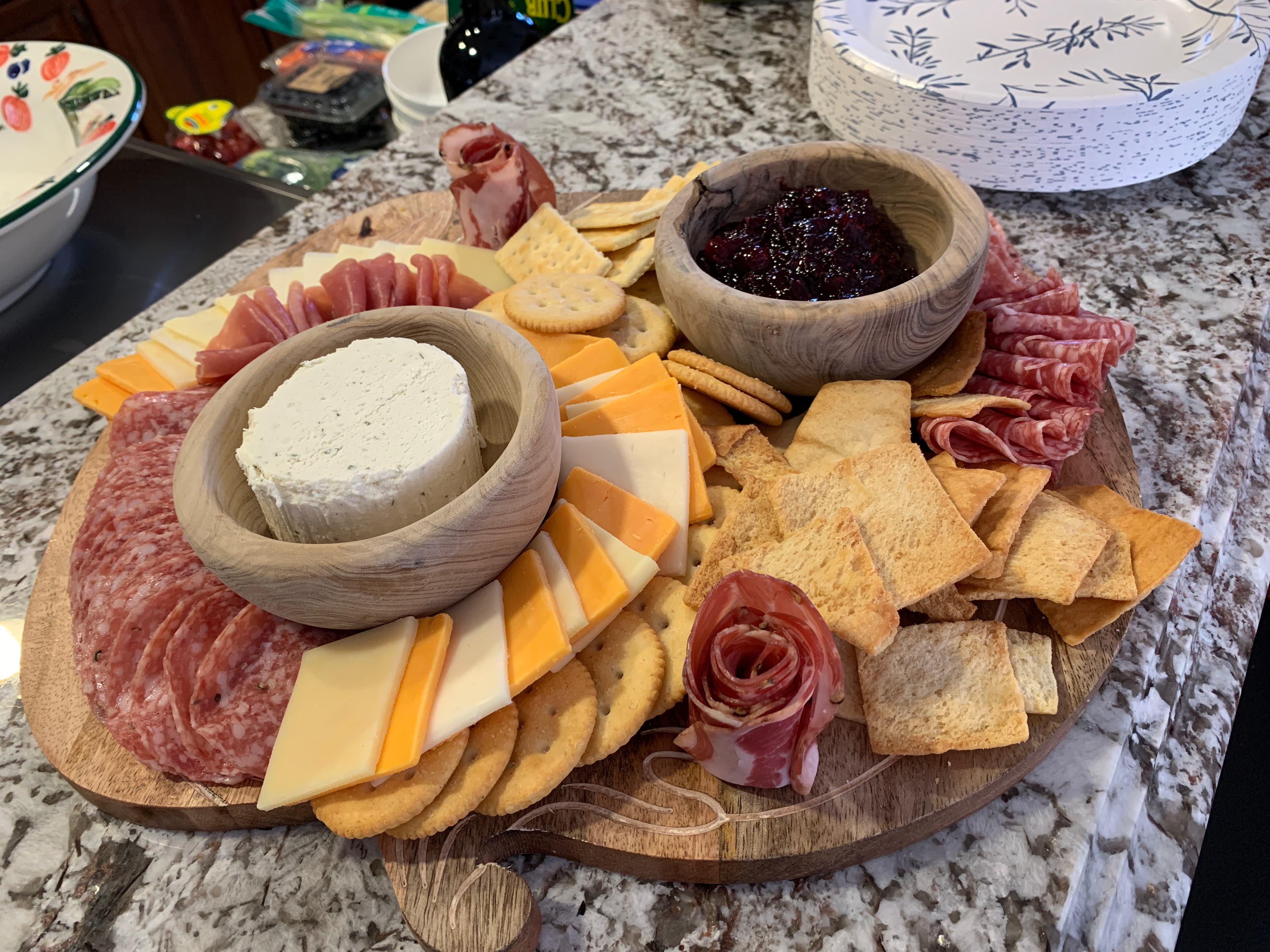 The whole meal looks beautiful but the presentation of the charcuterie board is impressive.