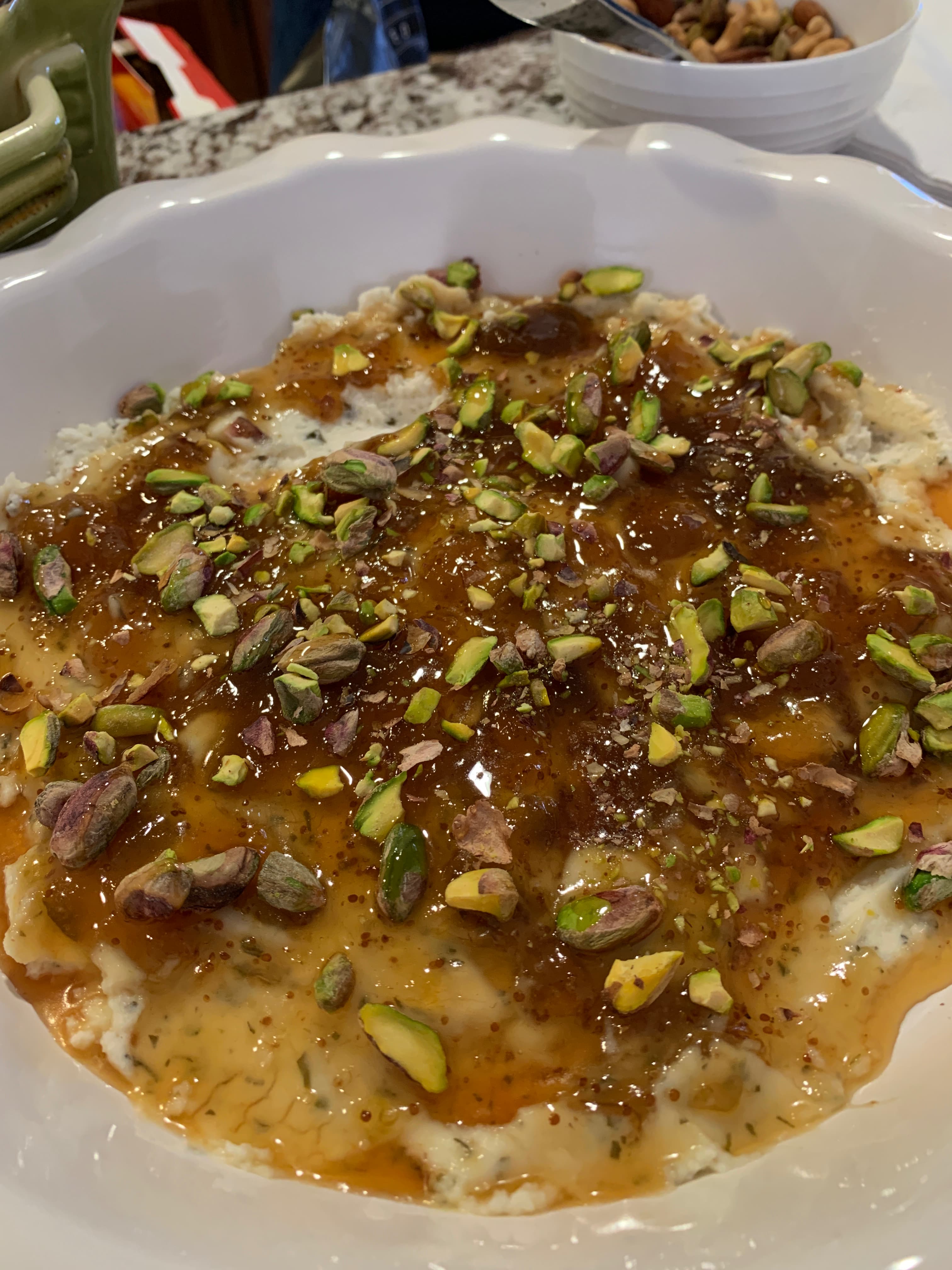 Friday thanksgiving at my daughter’s house. Two of my contributions were the broccoli salad and corn soufflé. I also brought dairy free Boursin topped with fig preserves, pistachios, and hot honey.