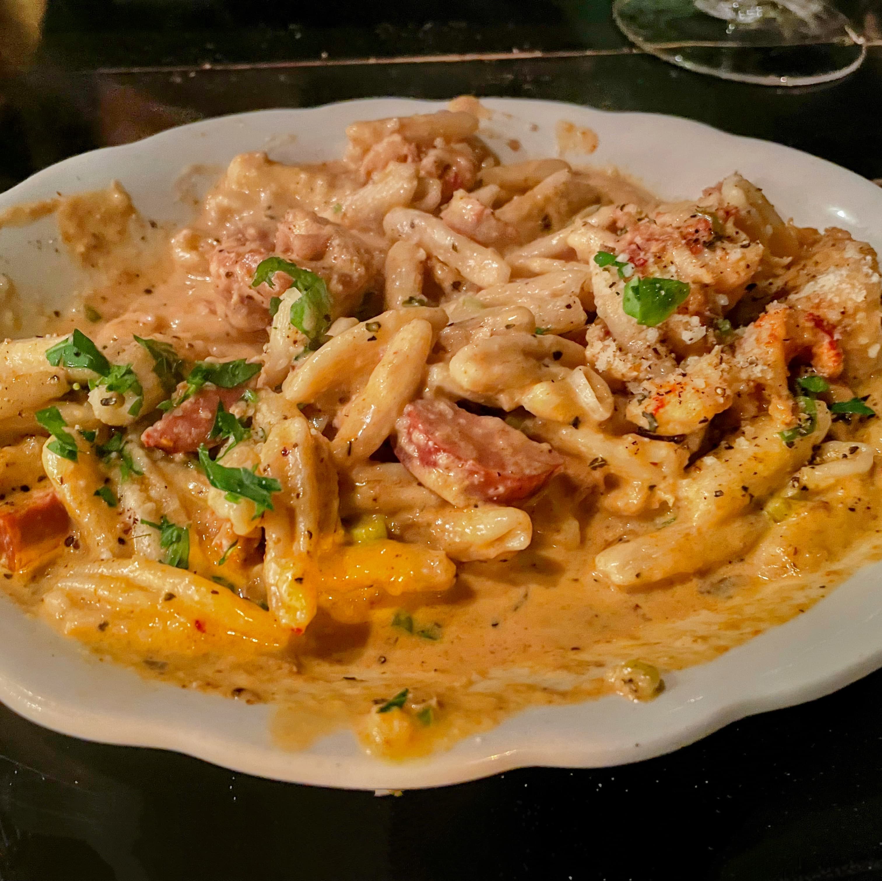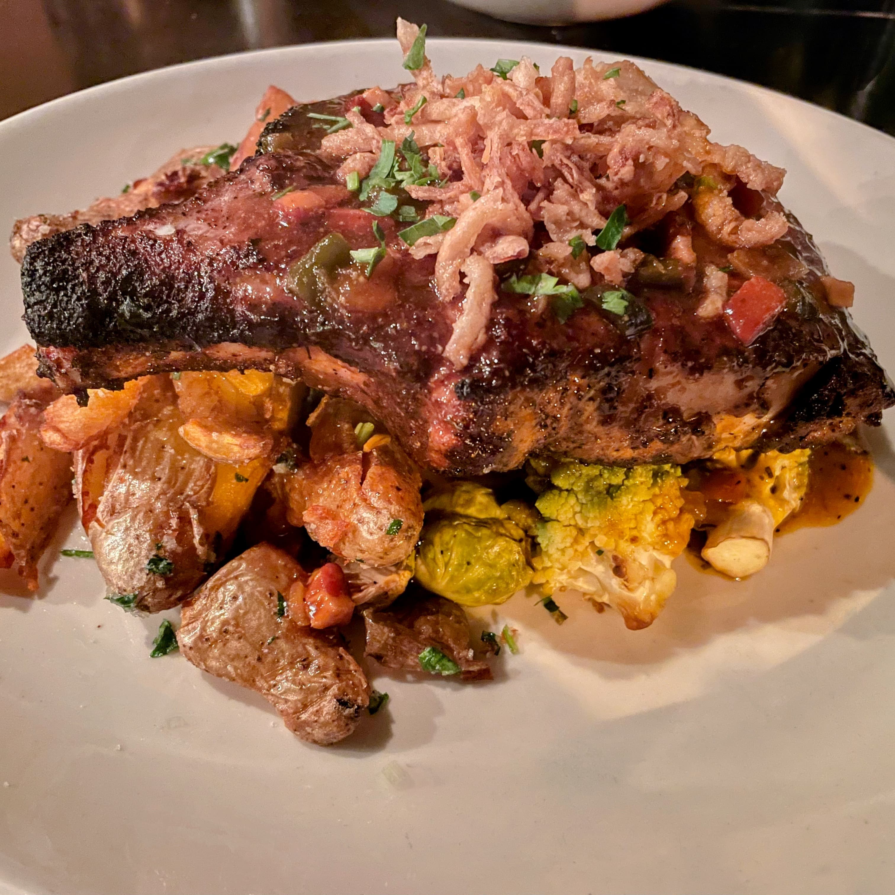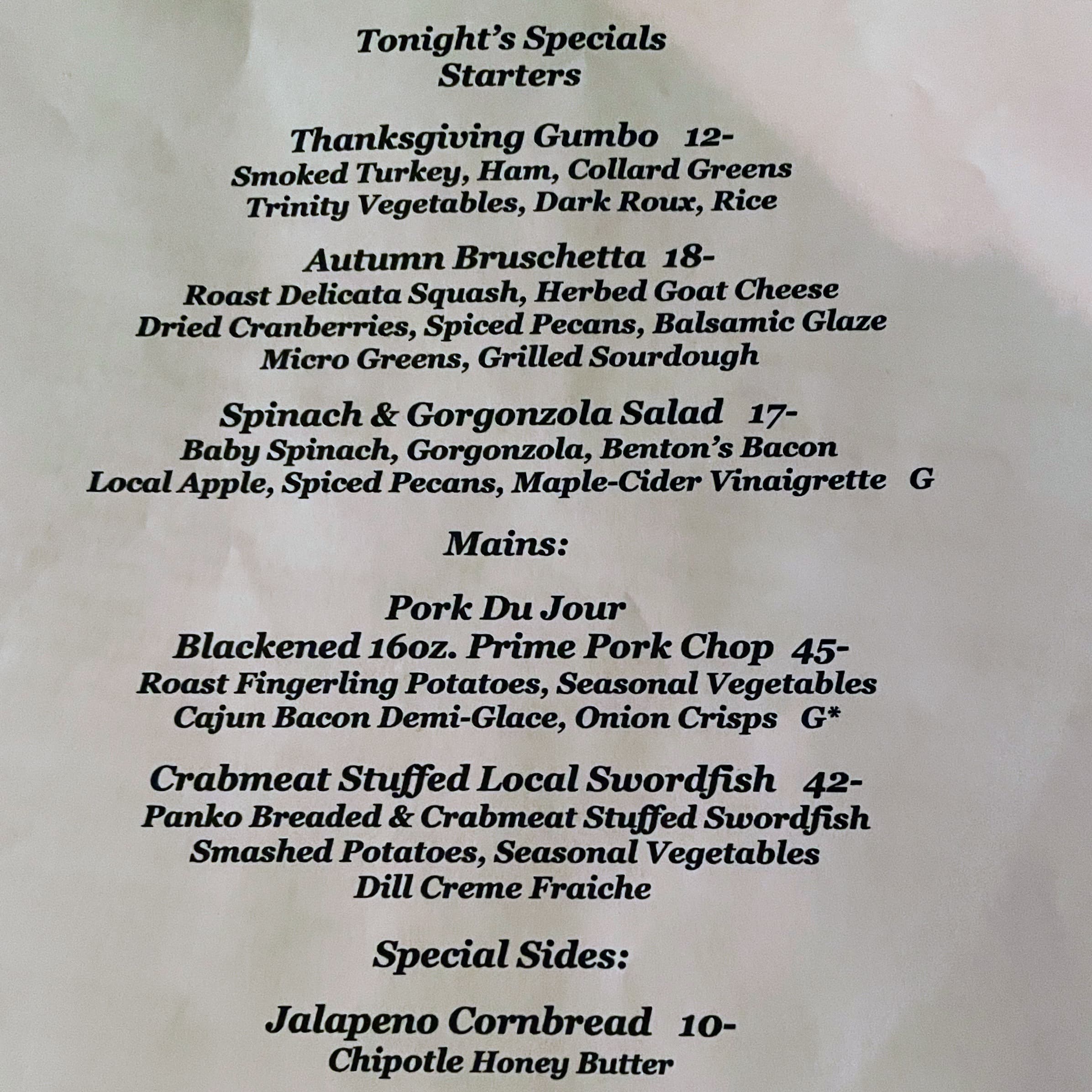 We enjoyed another outstanding dinner at Drew’s, in Keyport, NJ, including blackened pork chop; pork belly and sprouts in a spicy tabasco gastrique; broiled oysters; fried butternut squash ravioli with an apple chutney; spicy jambalaya pasta with crawfish, Andouille sausage, and chicken; spinach and gorgonzola salad; mussels. It all went great with an excellent cabernet and red blend. Menus attached for more detailed explanations.