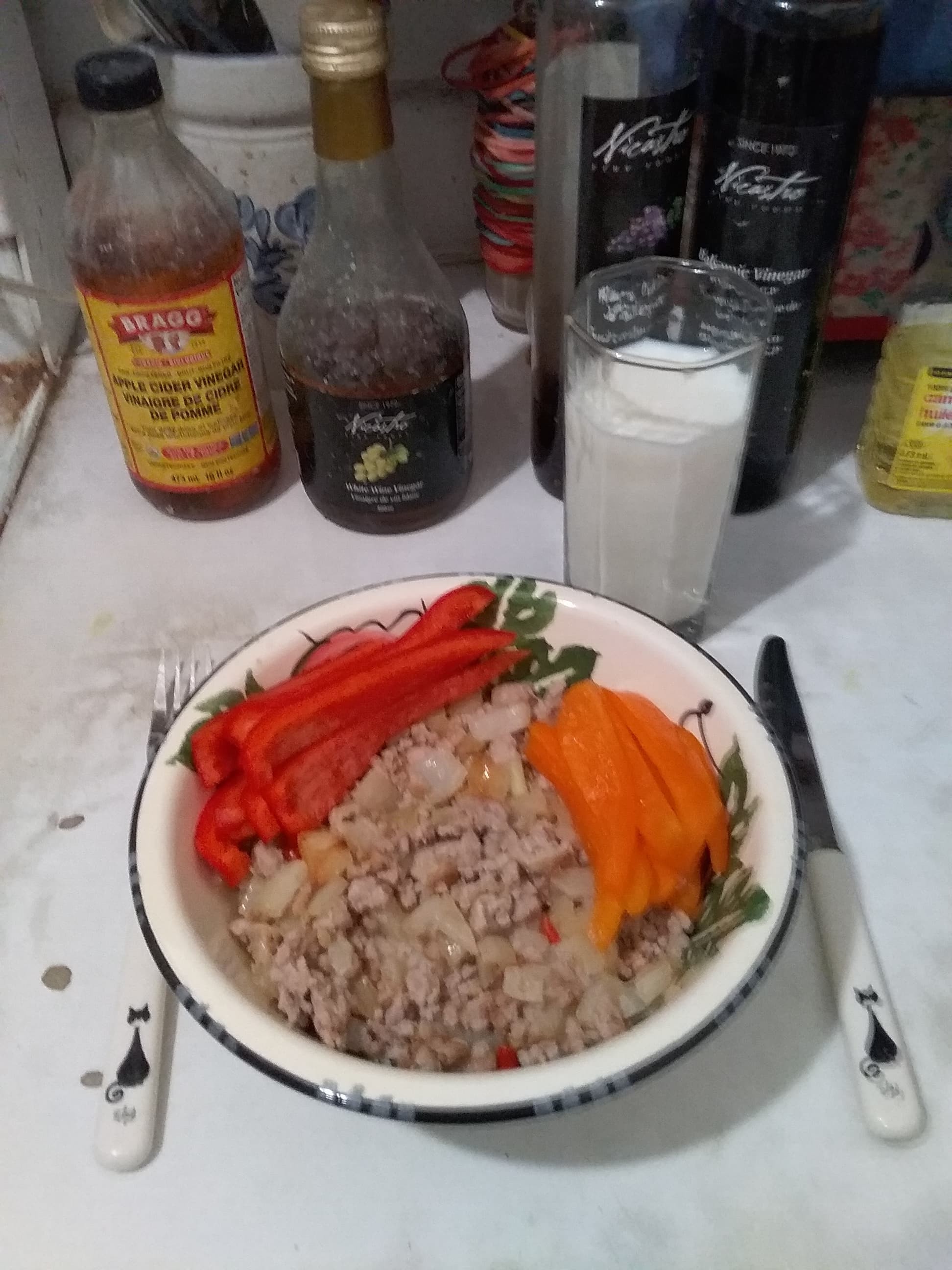 BF unearthed some al pastor flavored ground pork from the freezer (forgetting the brand now) and made us Mexi-rice bowls last night. Very good, although the meat had a little too much cinnamon for our taste.
