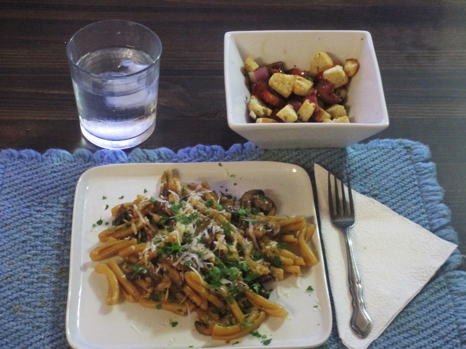 NYT Miso, Mushroom and Leek pasta. This was just ok, nothing special. It won’t be taking up space in my recipe box. Panzanella salad.
