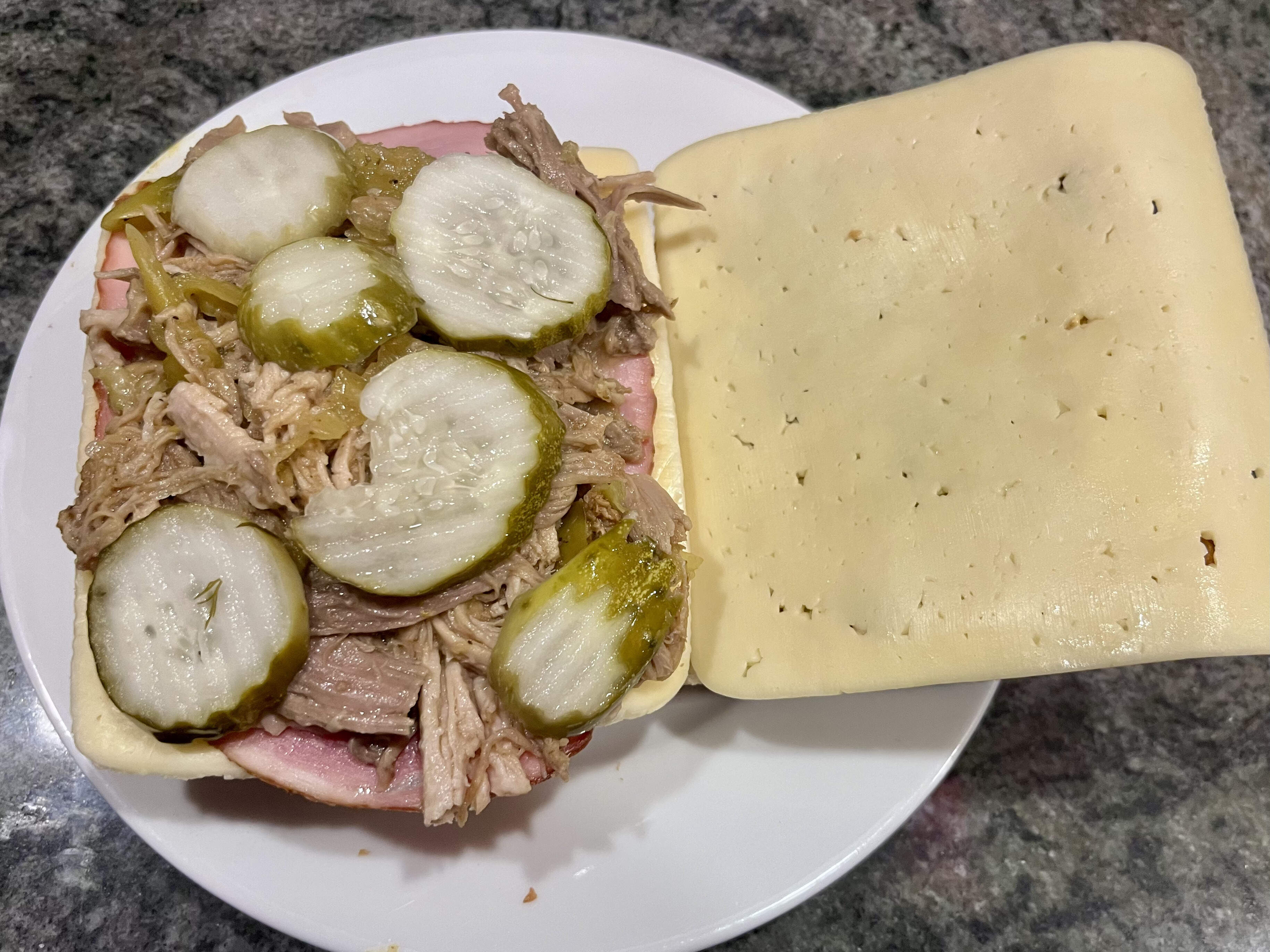 We took a ciabatta off her hands and ended up using that for the Cubanos, as a couple of other stops didn’t provide any more authentic options either. Given that I already planned to use Havarti instead of the traditional Swiss cheese I do not care for at all, that whole authenticity ship had sailed anyway ![]()