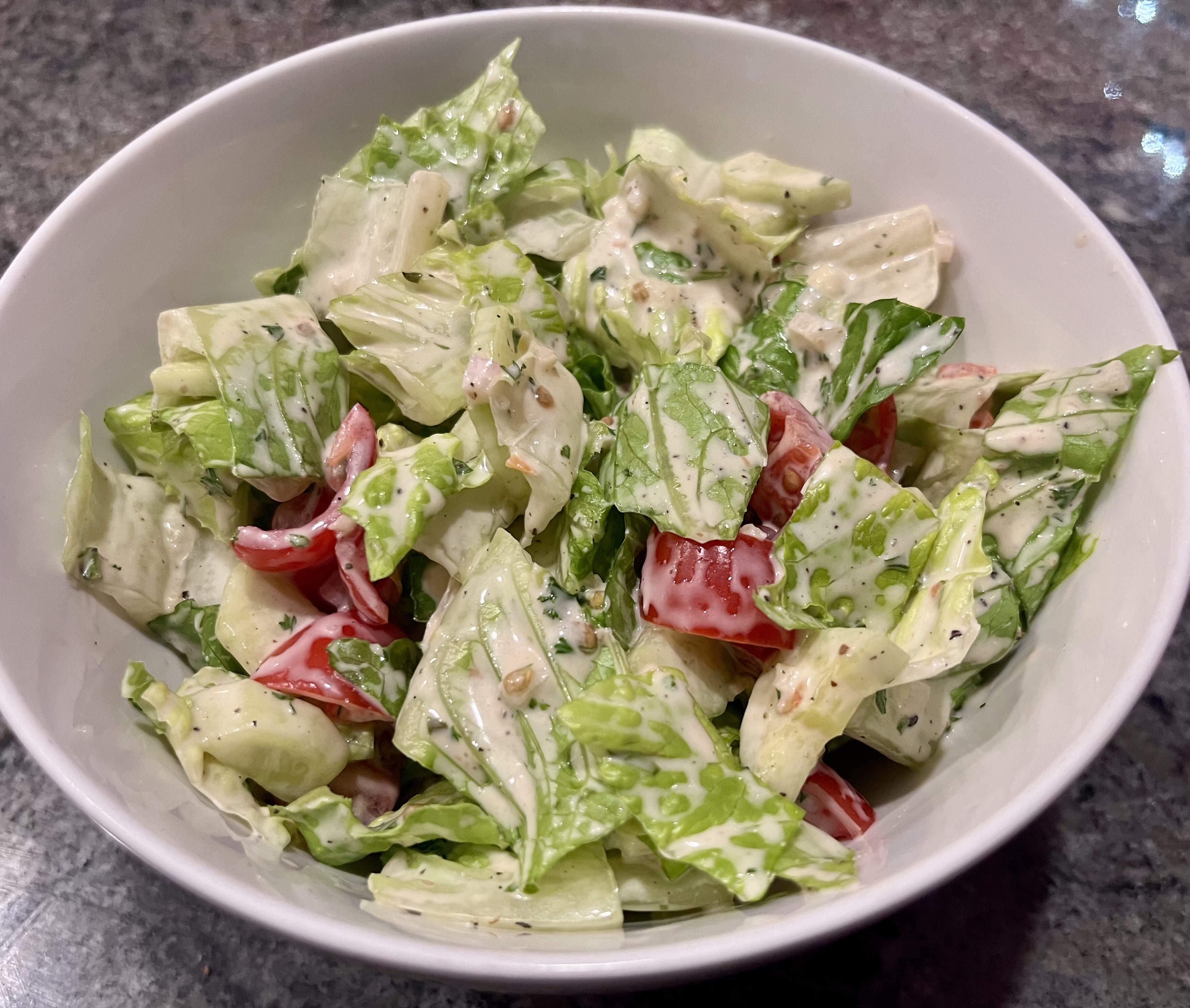 Romaine, Persian cukes, flavor bombs with buttermilk ranch on the side.