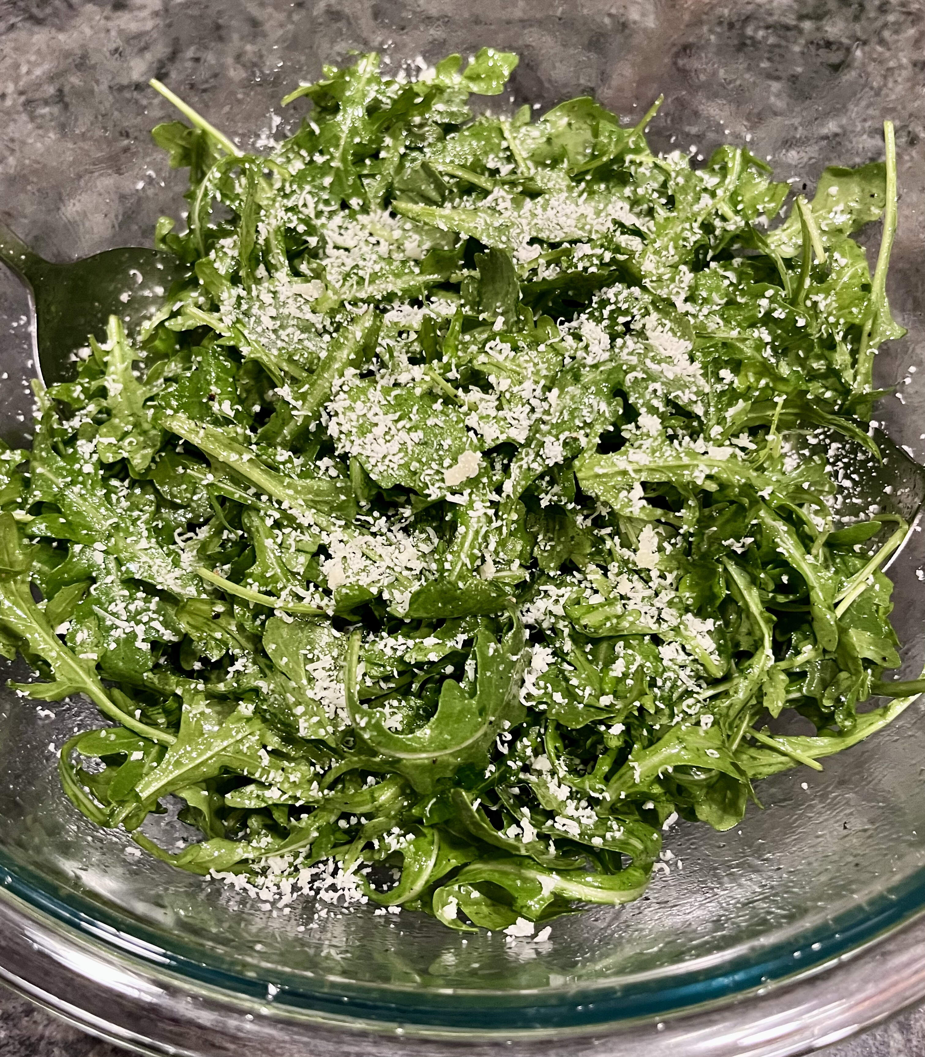 Arugula with lemon dressing & parm on the side. Simples ![]()
