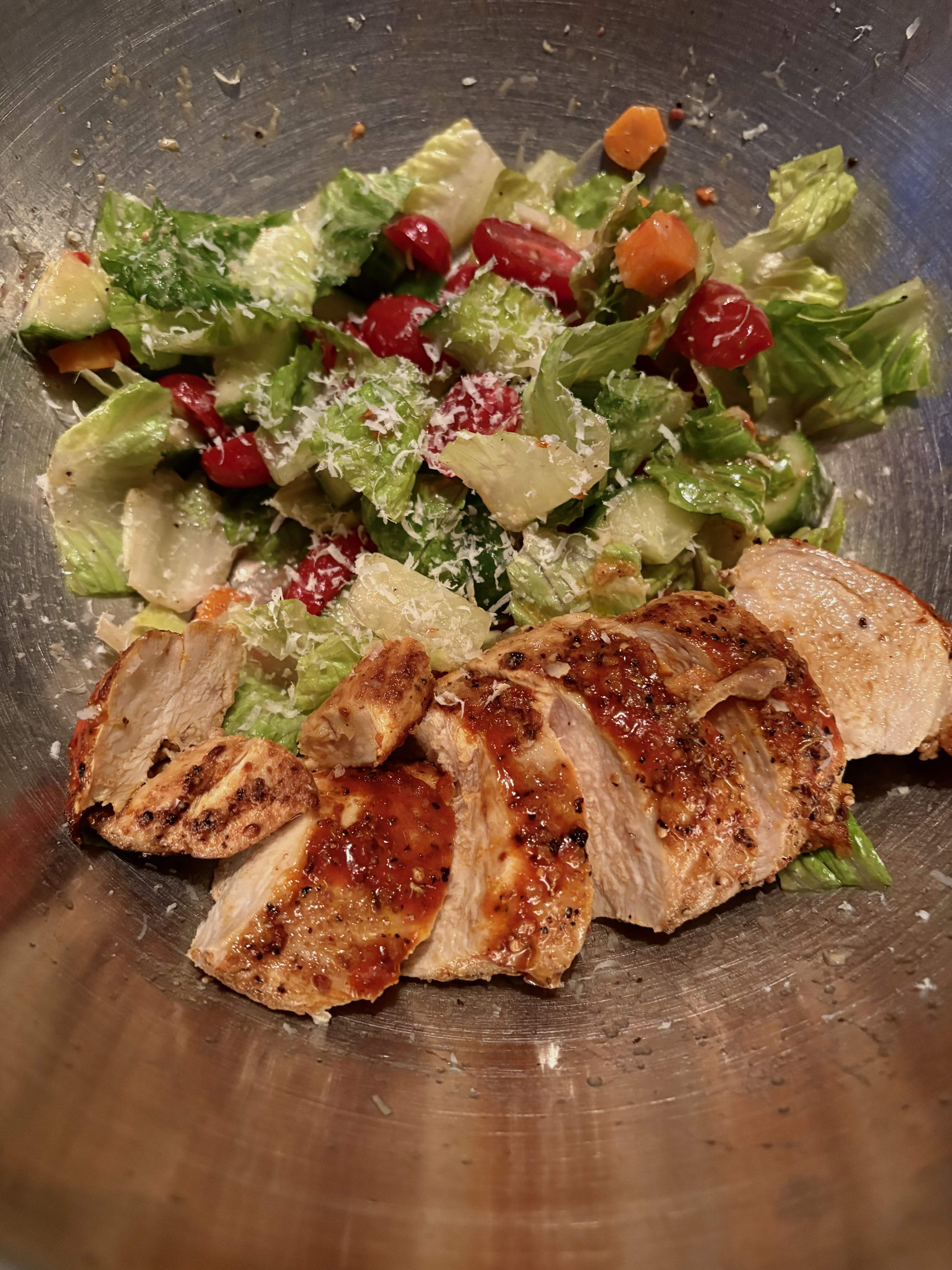 If I had to choose one dinner to have for the rest of my life, it would be chicken and salad. Looks good!