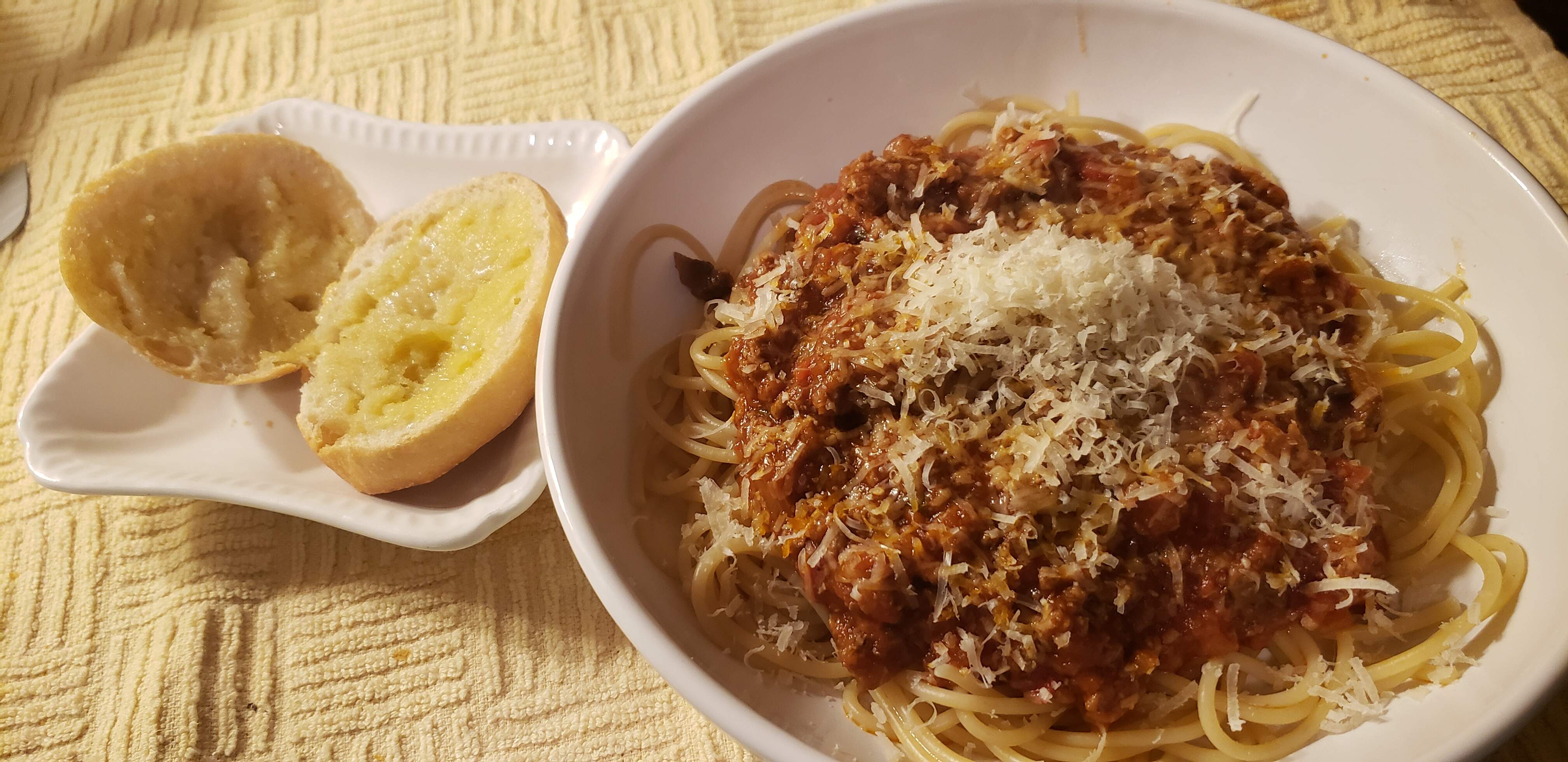 So an easy switch to Sketti and Sawce for dinner, a crusty buttered roll, and a small salad (not pictured).