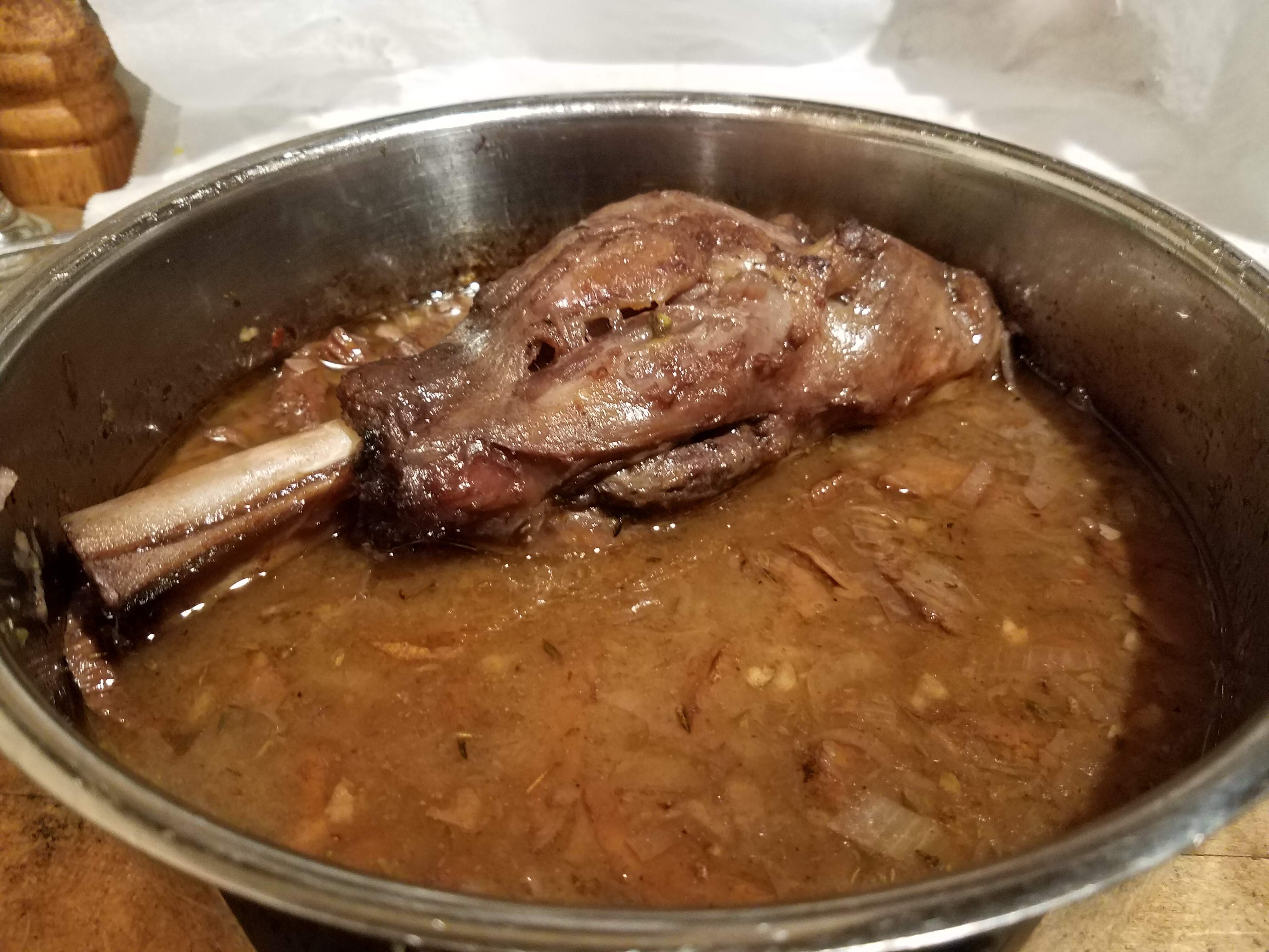 For Christmas dinner I braised a lamb shank with zinfandel and chanterelles, and made Kenji-inspired duck fat roasted potatoes. From the pan: