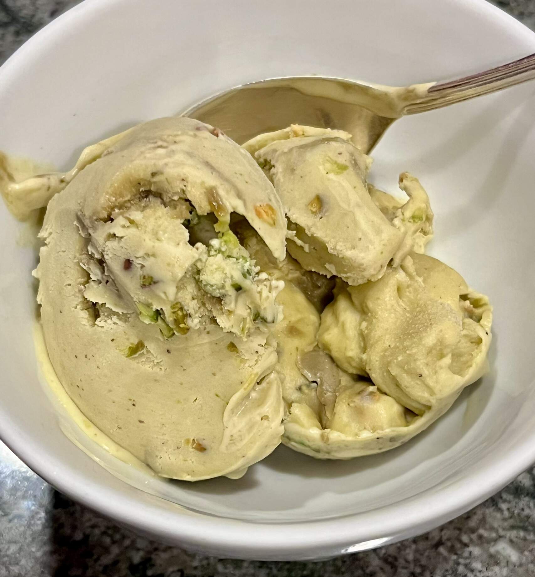 What does deserve a picture, however, is my PIC’s fan-fucking-tastic pistachio ice cream, made with raw & toasted pistachios, and rivers of pistachio cream running through. Not sure I want to share any of it with our hosts this afternoon ![]()