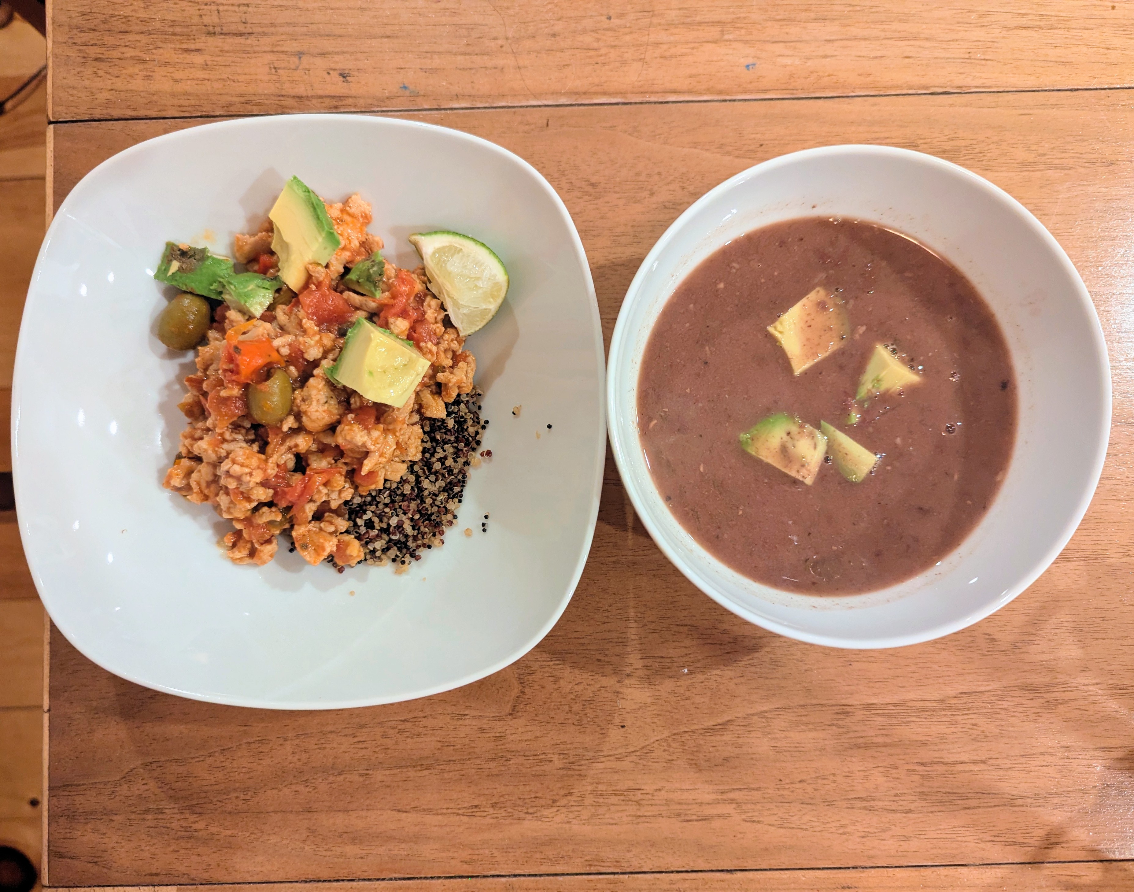 Resourcefulness was the name of the game last night for dinner here, too. Defrosted Honduran bean soup, a batch of quinoa, and leftover Veracruz sauce and browned some ground chicken. Combined chicken with the sauce for a quick picadillo and served over the quinoa with soup on the side. Avocado on all. Delicious.