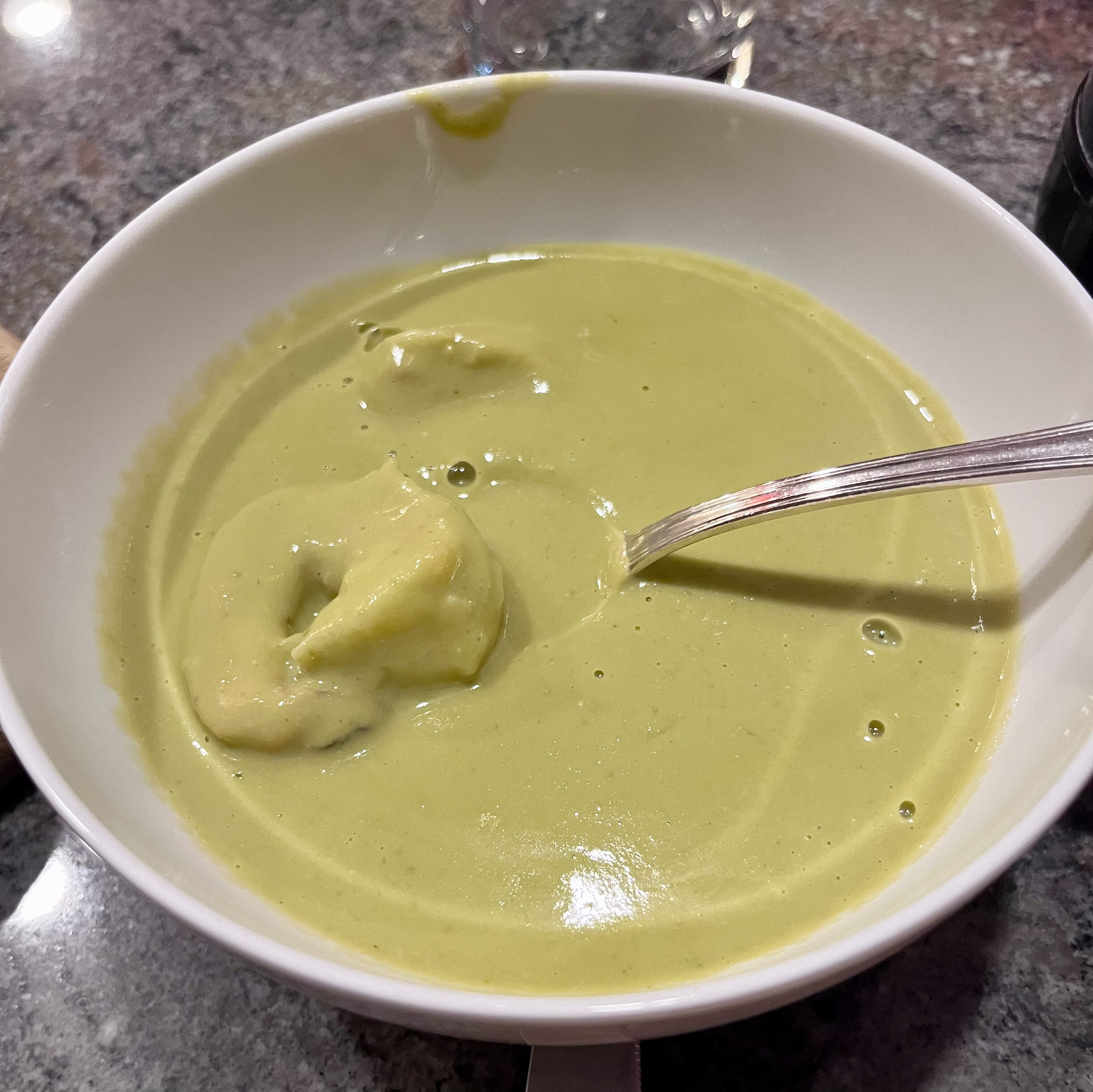 Was drawing a blank on dinner & we were both turkey souped out, so I just heated up the pea & mint soup from the FM and added a few black tiger shrimp.