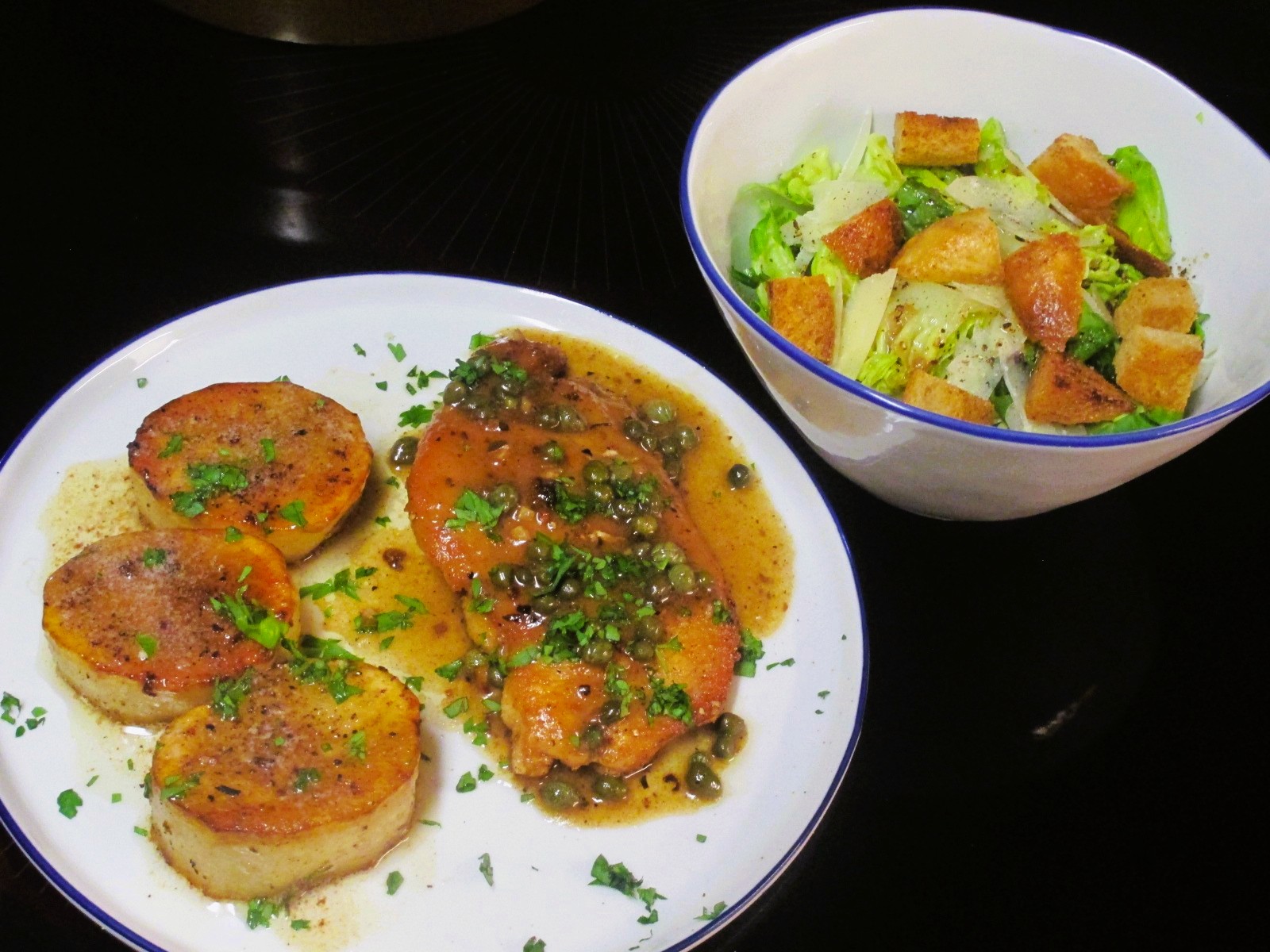 Yotam Ottolenghi’s cod cakes in tomato sauce from Jerusalem. I use halibut. I’ve mentioned in other posts how mincing halibut is one of my least favorite preps, but it’s so worth it when it comes to fish cakes – toothsome, yet so tender! With the seasonings, the whole house smells great.