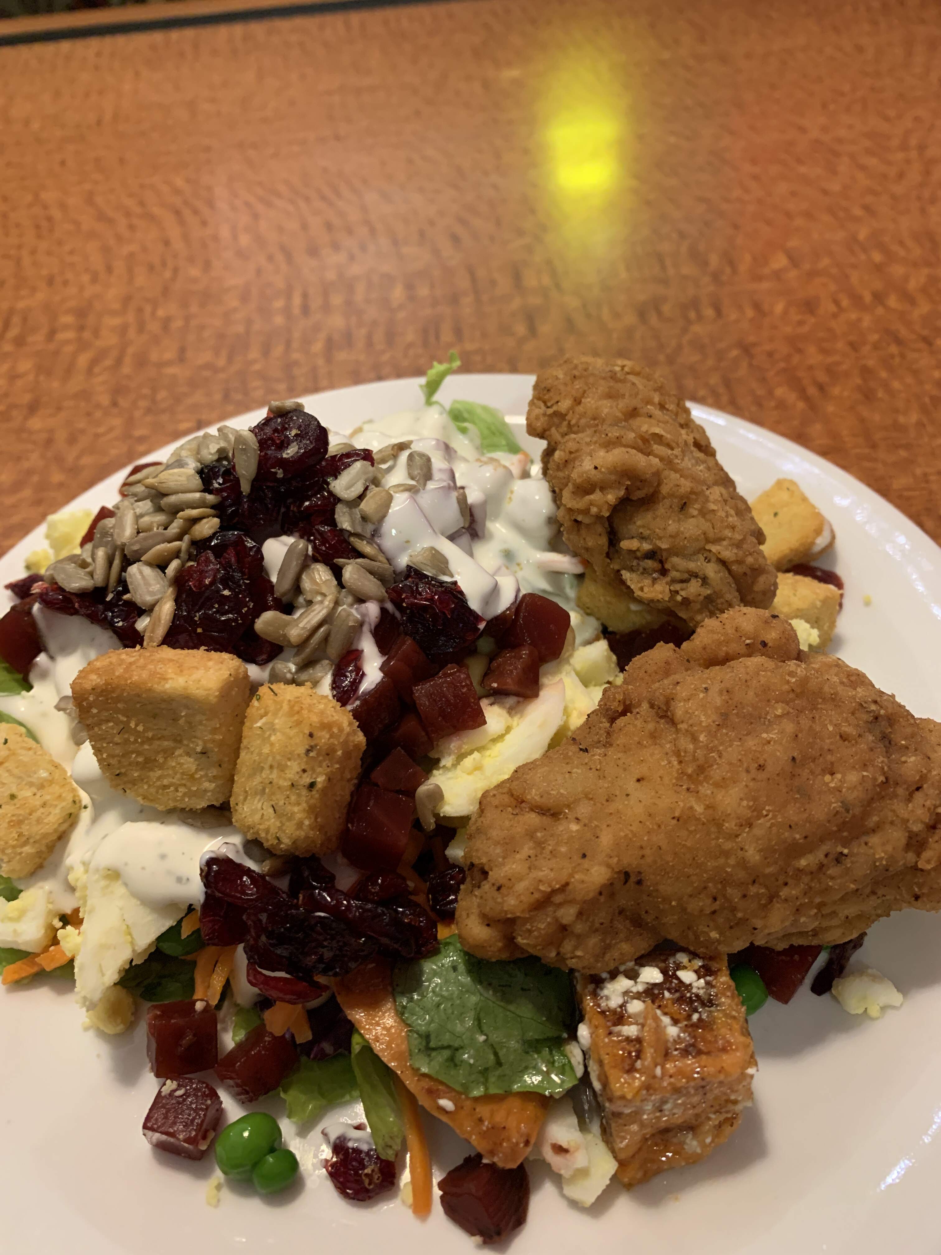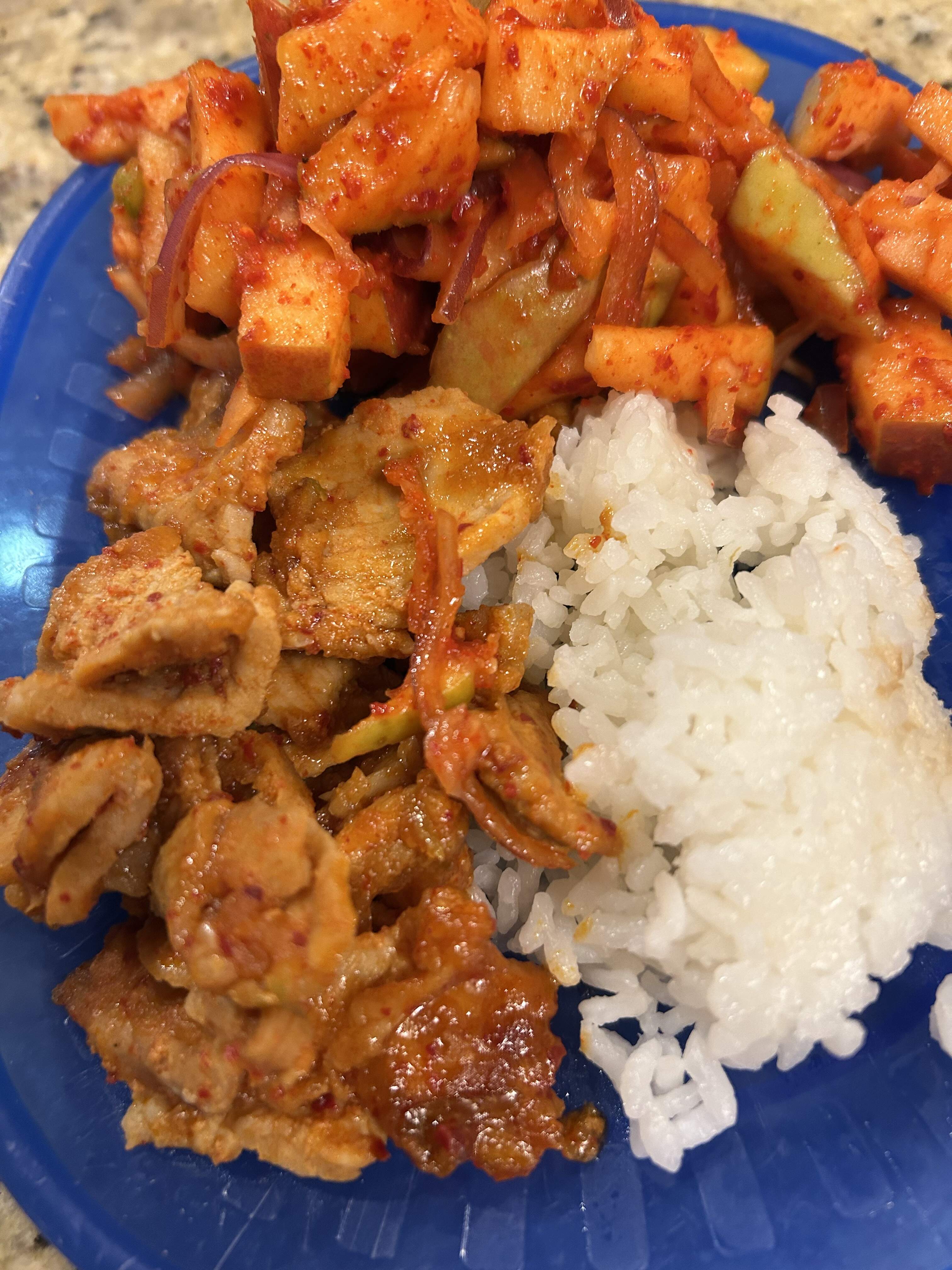We’ve had a couple days of not cooking here, due to various dental issues for the BF, late medical/dental appts., and more working OT for me. So there was take-out. Mon., a giant suadero/chorizo burrito for him (which he doctored up with crema and avo), and quesabirria tacos for me. Tues., our local divey Chinese place for won ton soup, pot stickers, and Korean fried chicken, which I’m surprised they had and is a relatively new thing there. I’d never tried theirs until last night, and they were SO GOOD i can never order them again. There were 10 pieces for $13.00, and i inhaled 4 of them at dinner (never mind how many since) (in (some) fairness to me, I hadn’t eaten anything else all day because of appts.) Super crunchy, delicious, although not very spicy. (I added chili crisp.)