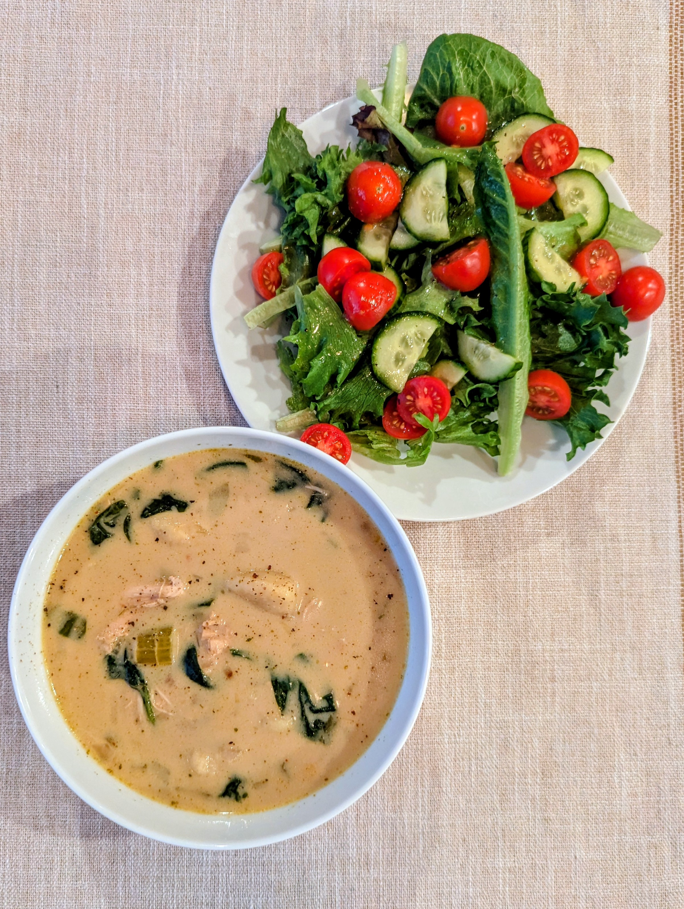For tonight’s wintery chill I made my take on Olive Garden’s creamy chicken gnocchi soup with spinach. Hit the spot with a green salad.