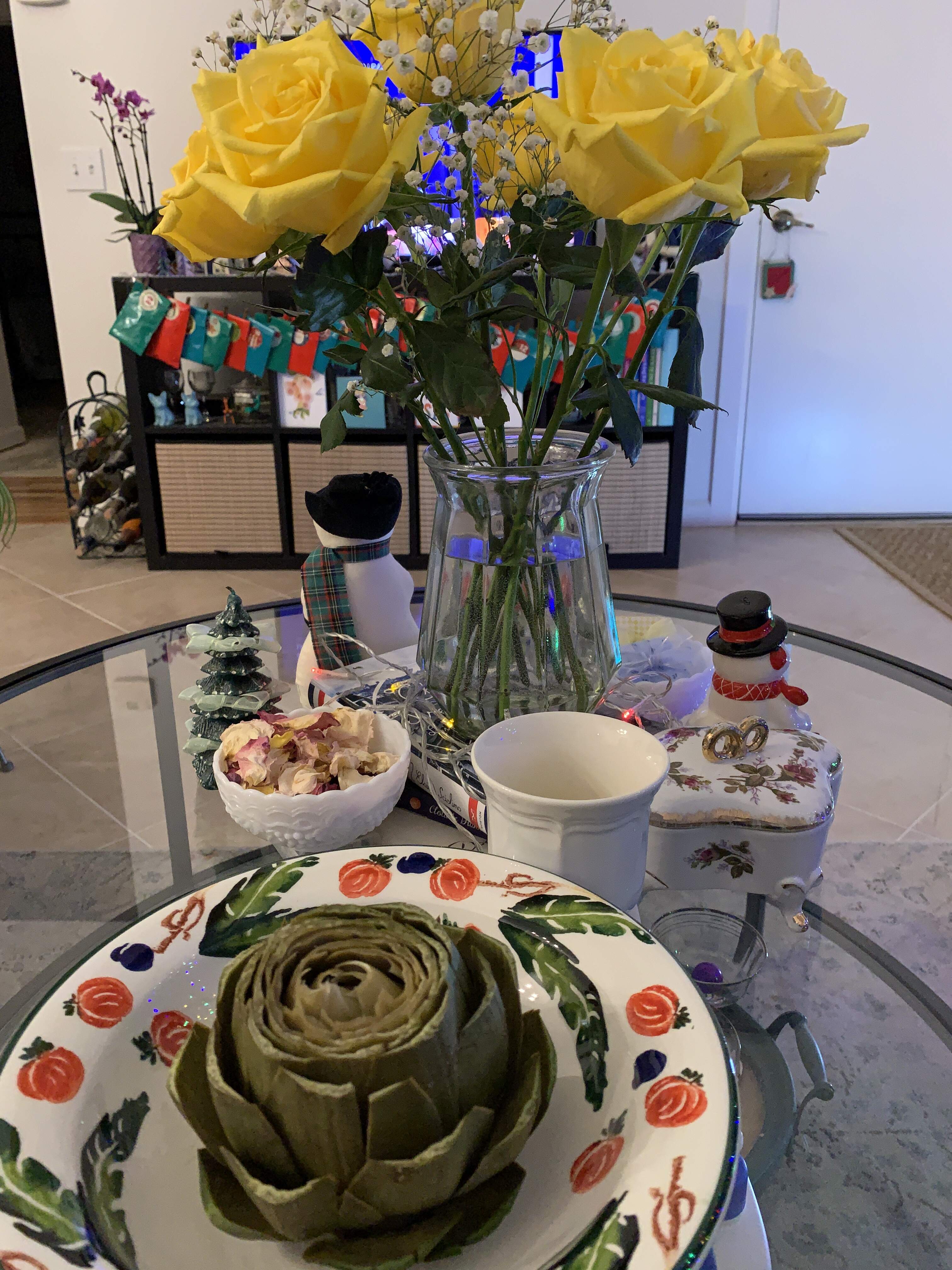 Busy trying to get Christmas stuff done so this is all I could manage. What’s my excuse all the other times I posted an artichoke?? I have none. I just love them.