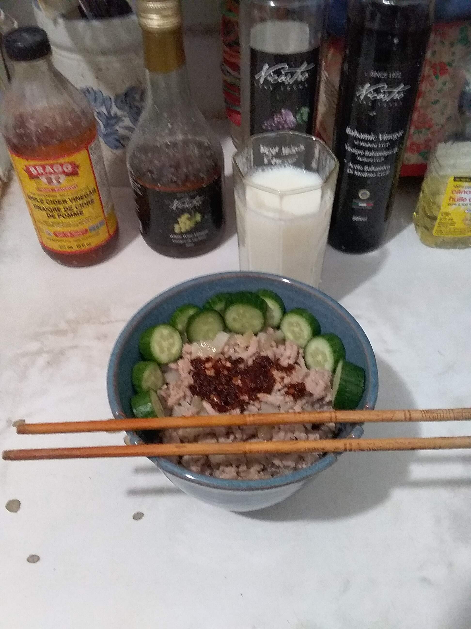 Last night’s dinner was a Vietnamese pork bowl. The recipe calls for adding Thai chili peppers but I didn’t have any so I added a little chili oil for heat.