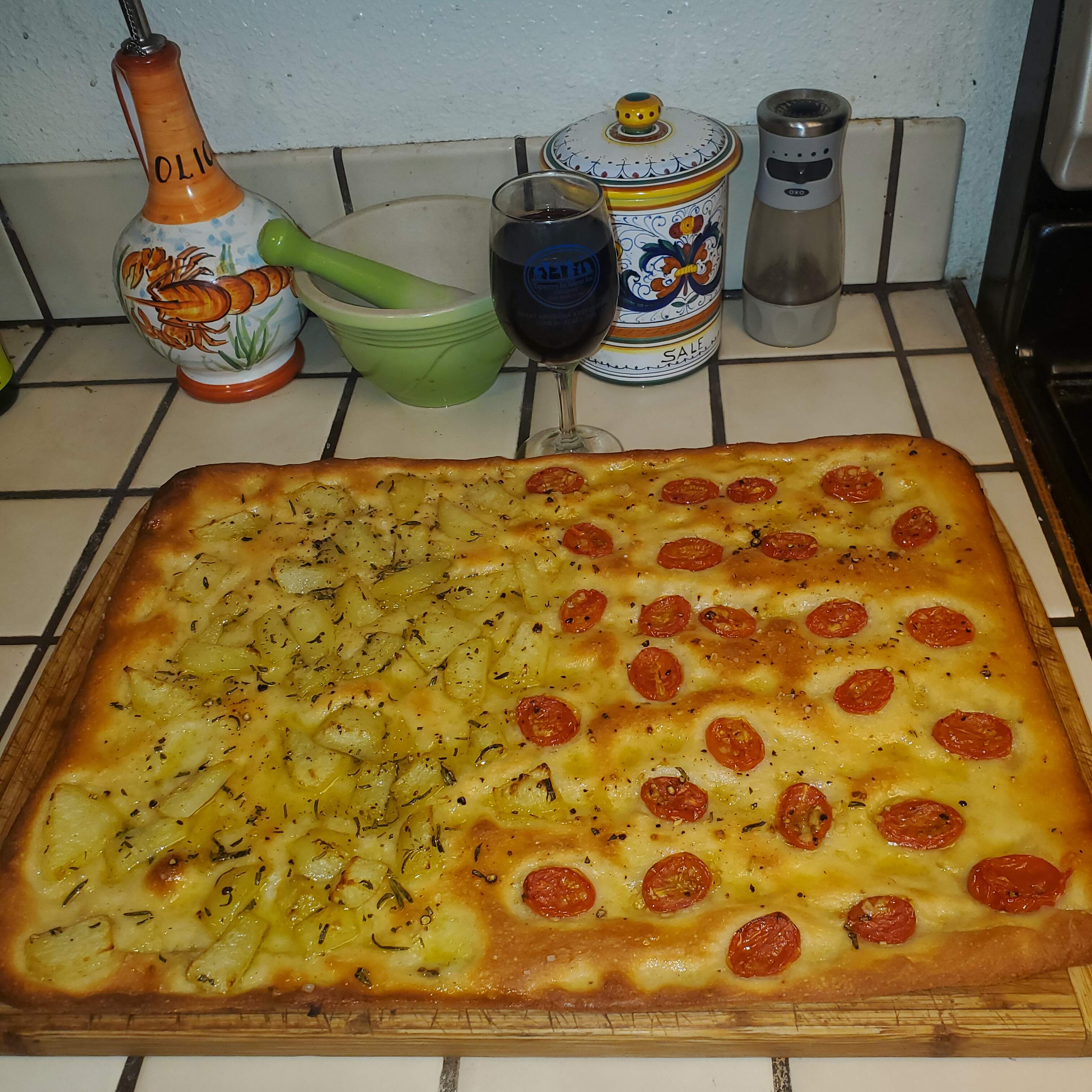 Focaccia Genovese. I really liked the Pugliese style last week . Was better the next day . Had for lunches during the week .