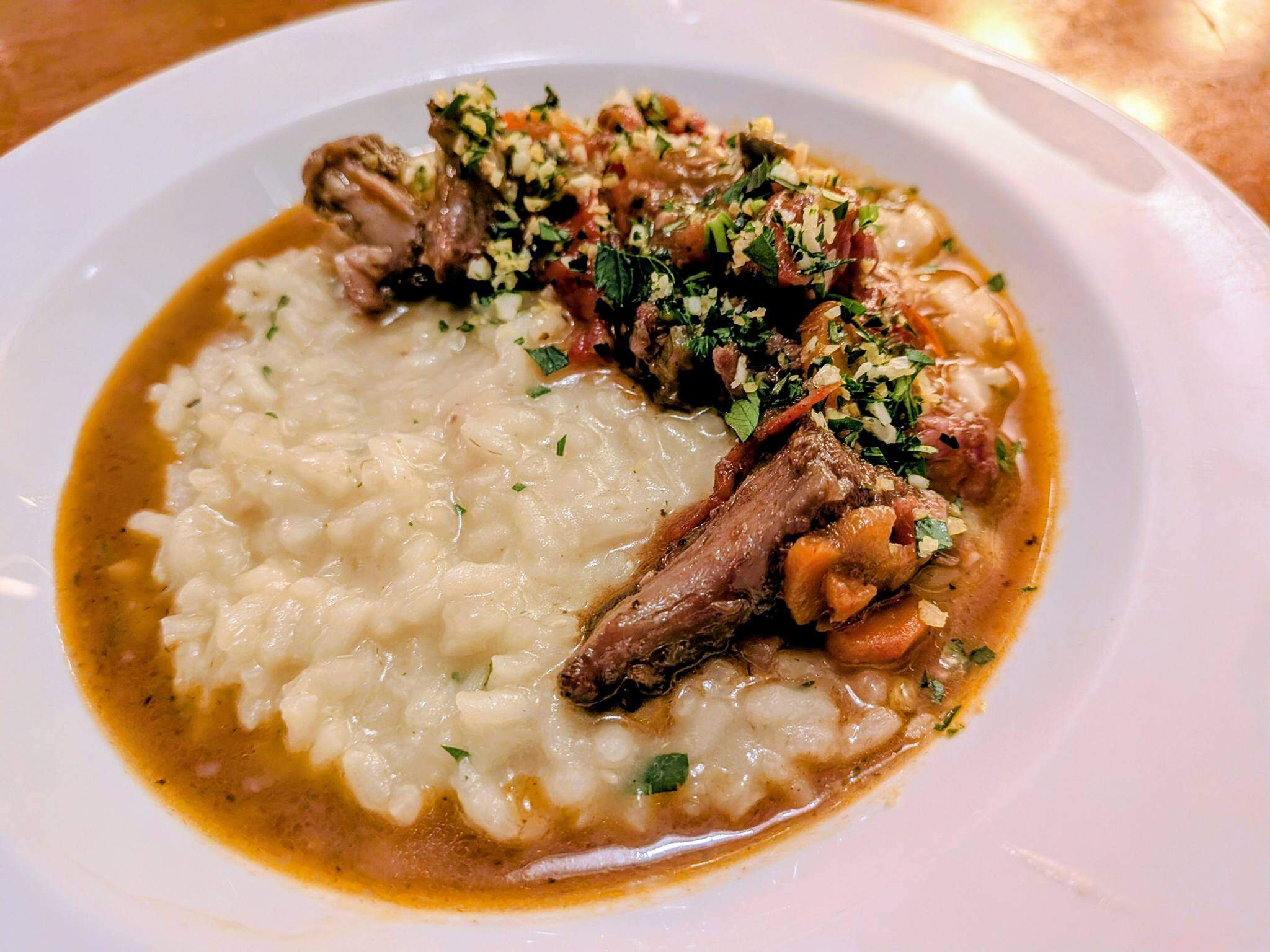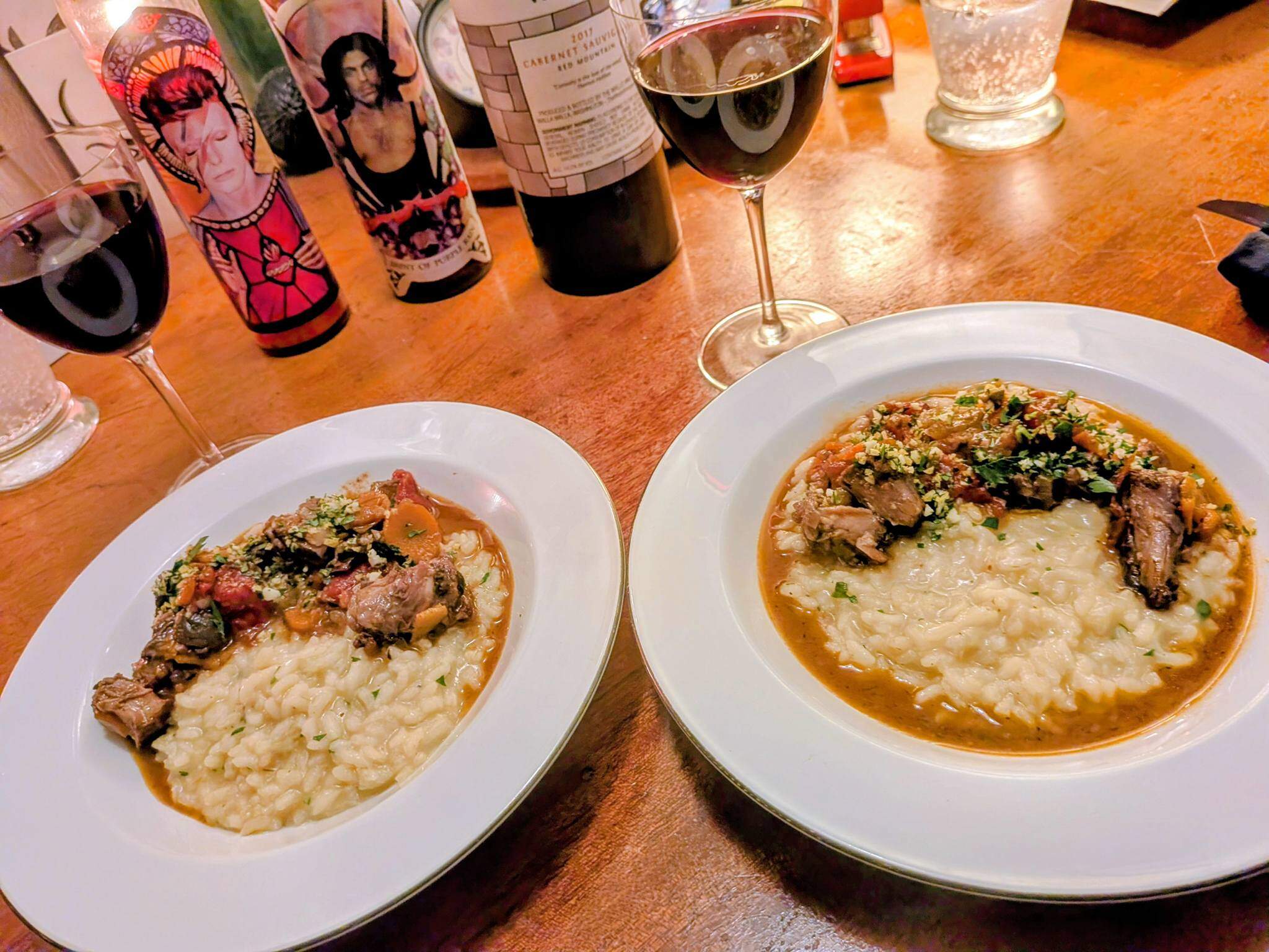 I made osso bucco with orange peel, anchovy, and oil-cured olives, ala Serious Eats, and a wonderful gremolata. I used veal and beef shanks - super tender and delicious! But the best was the risotto Milanese, with saffron - i worked on it for almost an hour, and it paid off - I achieved the perfect, creamy texture. We had good wine gifted by one of my attys, and a very nice Frenchy champagne by another.