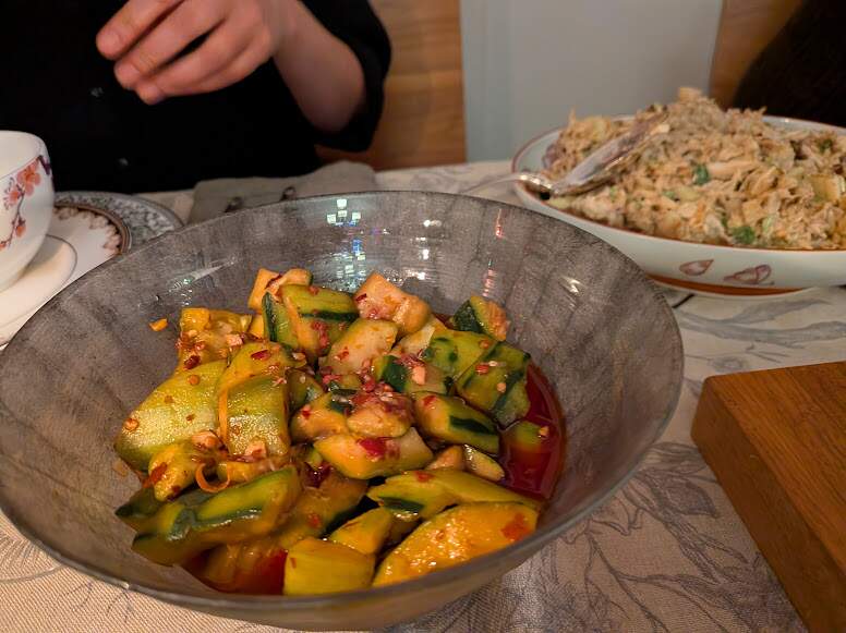 That weekend, I went to a friend’s wonderfully decadent dinner party before the BF’s surgery, for a braised Sichuan goose dinner and all manner of other lovely Sichuany-themed/flavored things, including homemade dried beef with dipping sauces, and a fabulous take on strange flavor chicken but with turkey instead.