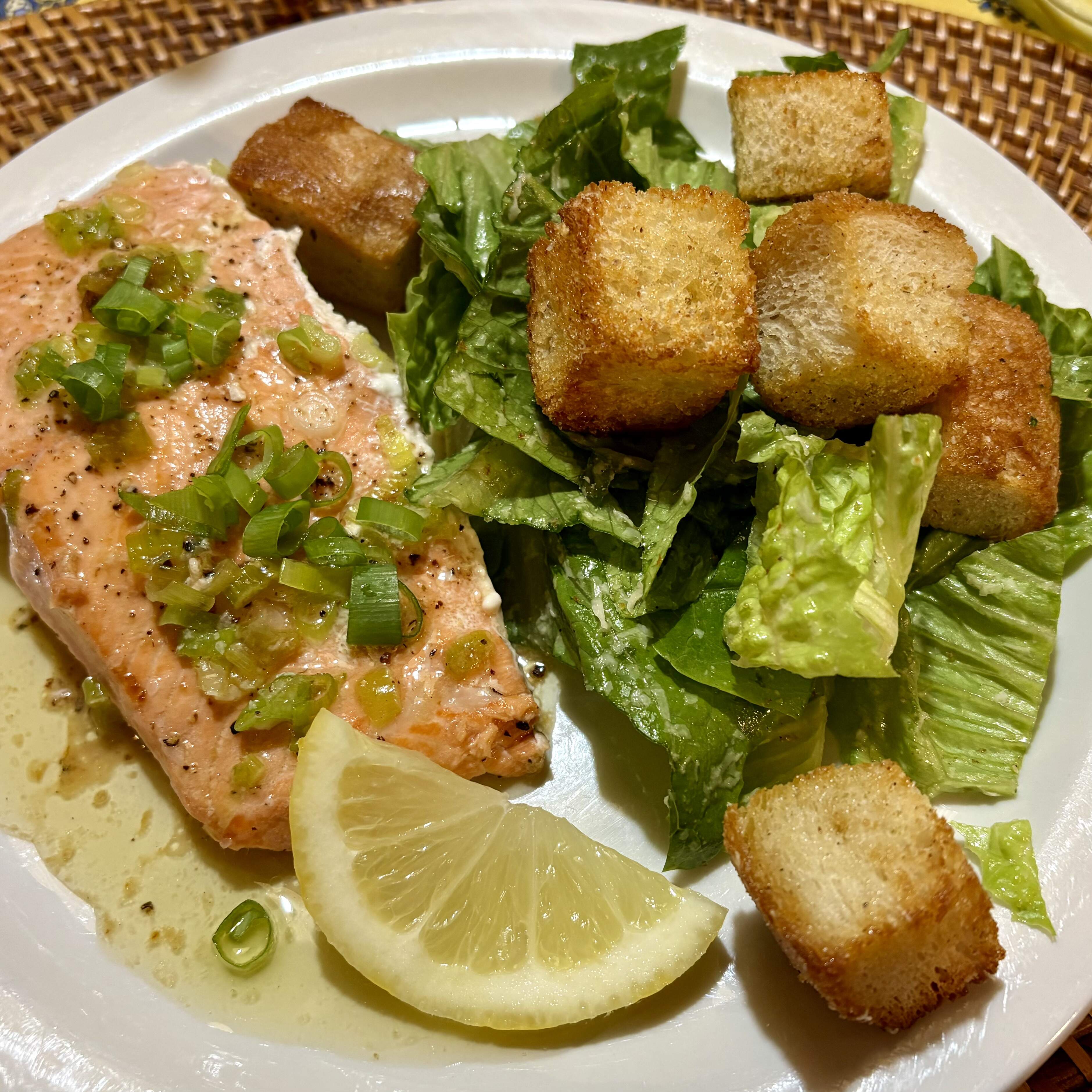 I salted the lamb at about 1.3% and added granulated garlic and onion, baked to about 125°F in a low oven (175F) for a couple of hours, then seared in cast iron, and then reduced the heat and added some butter and added the veggies.