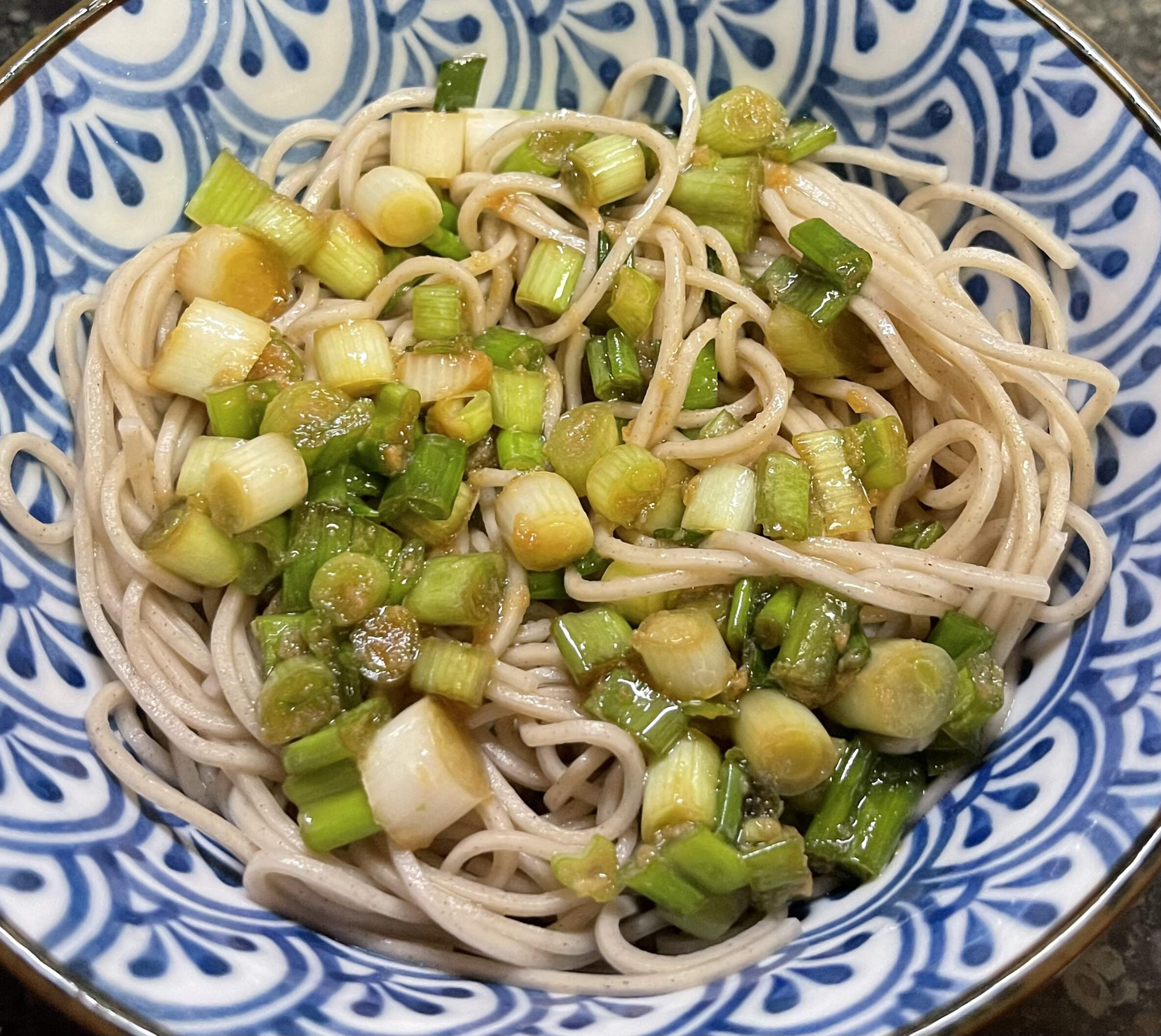 And then, because I am MADE OF MONEY, I had some soba with ginger scallion sauce. (Scallions are either $1 or $2/bunch here, and have been forever).
