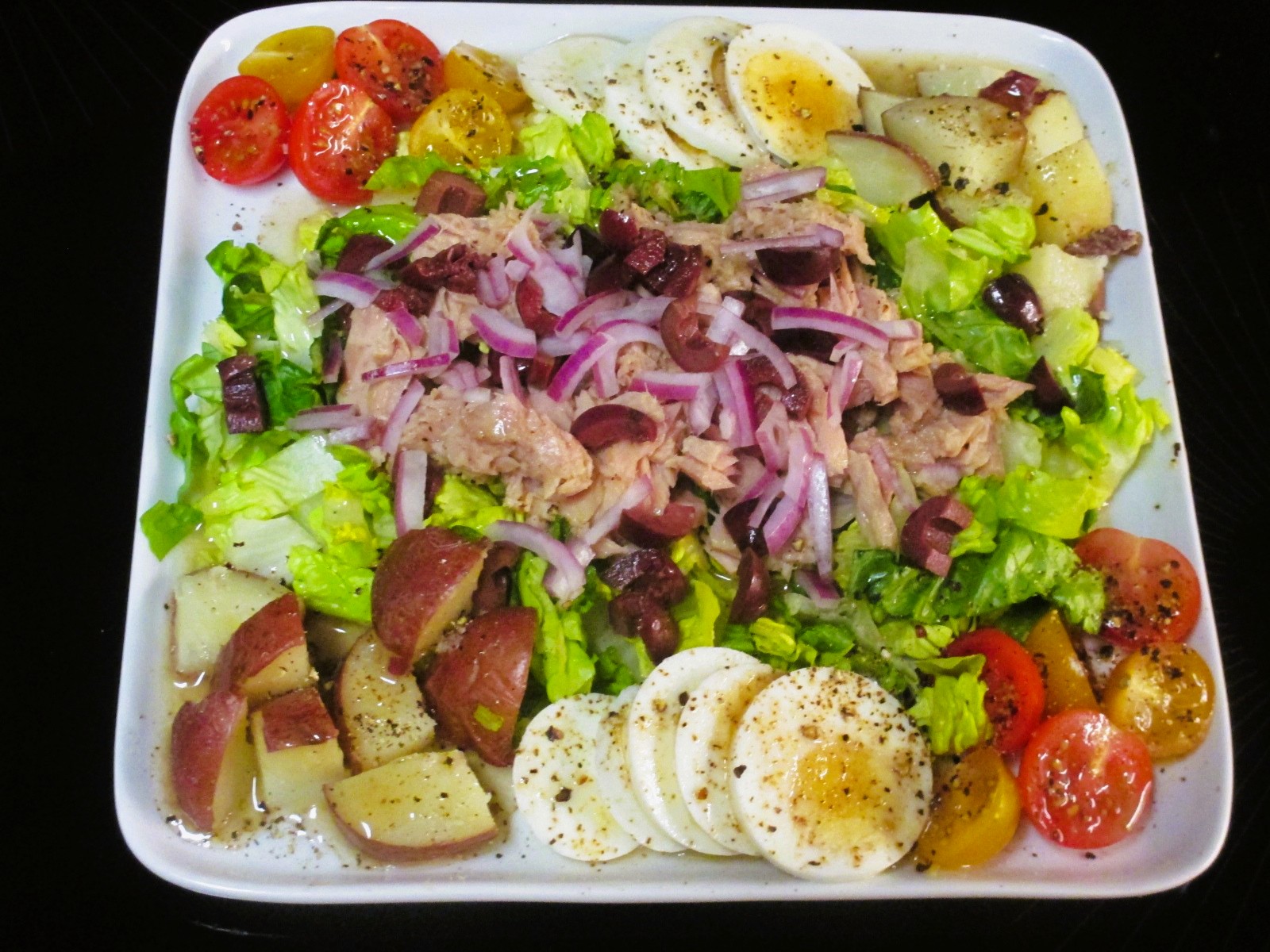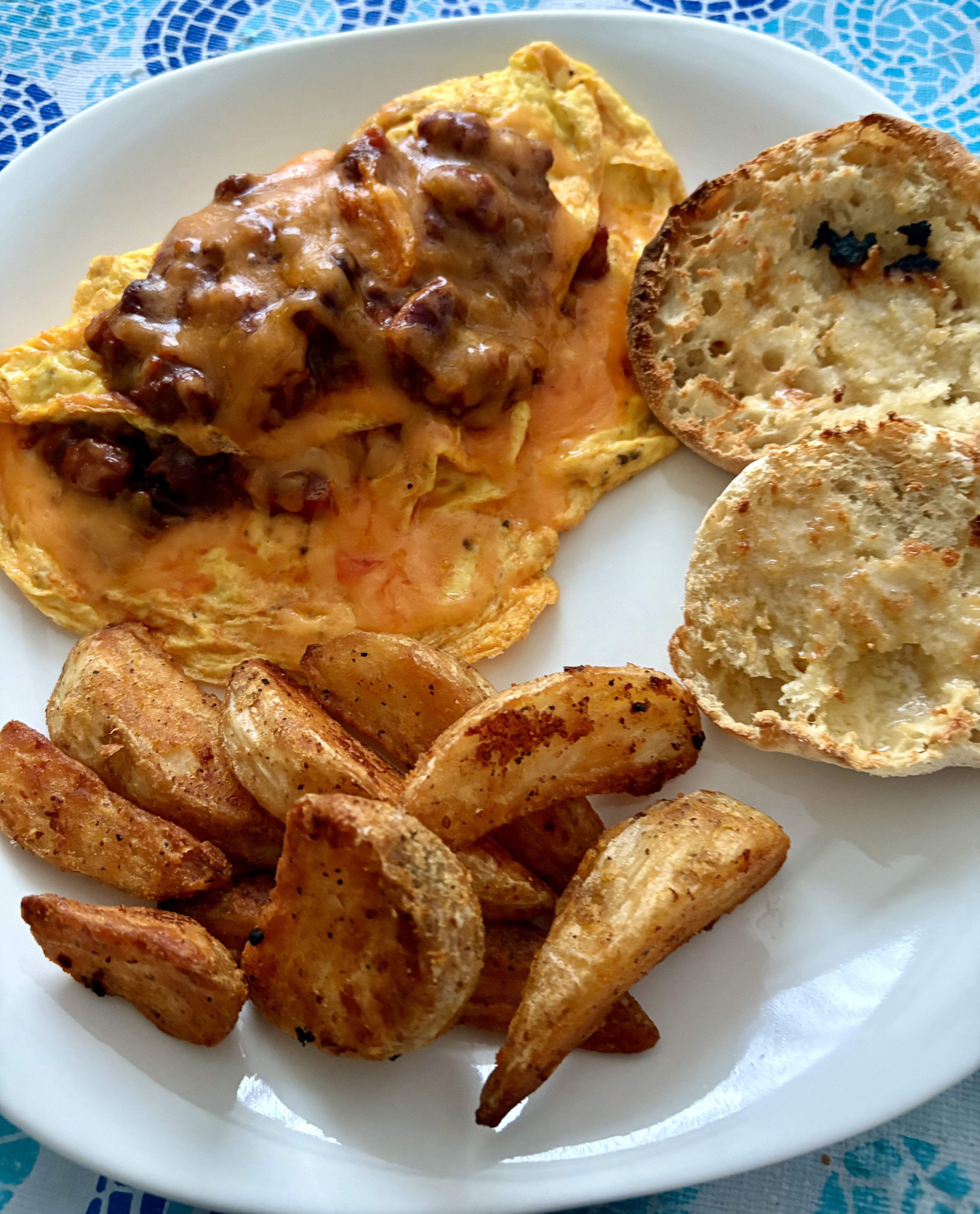 I wanted potato with the nice black cod that I would batter and shallow fry. French fries? Mash? How about hash browns. I’ve had a hard time getting them to work out in the past. Would the air fryer work? It did, sort of. They didn’t completely cook after more than 10 minutes, so I cranked up the broiler to finish them. Crisp and lacy! The coating slid off of the fish, no worries.