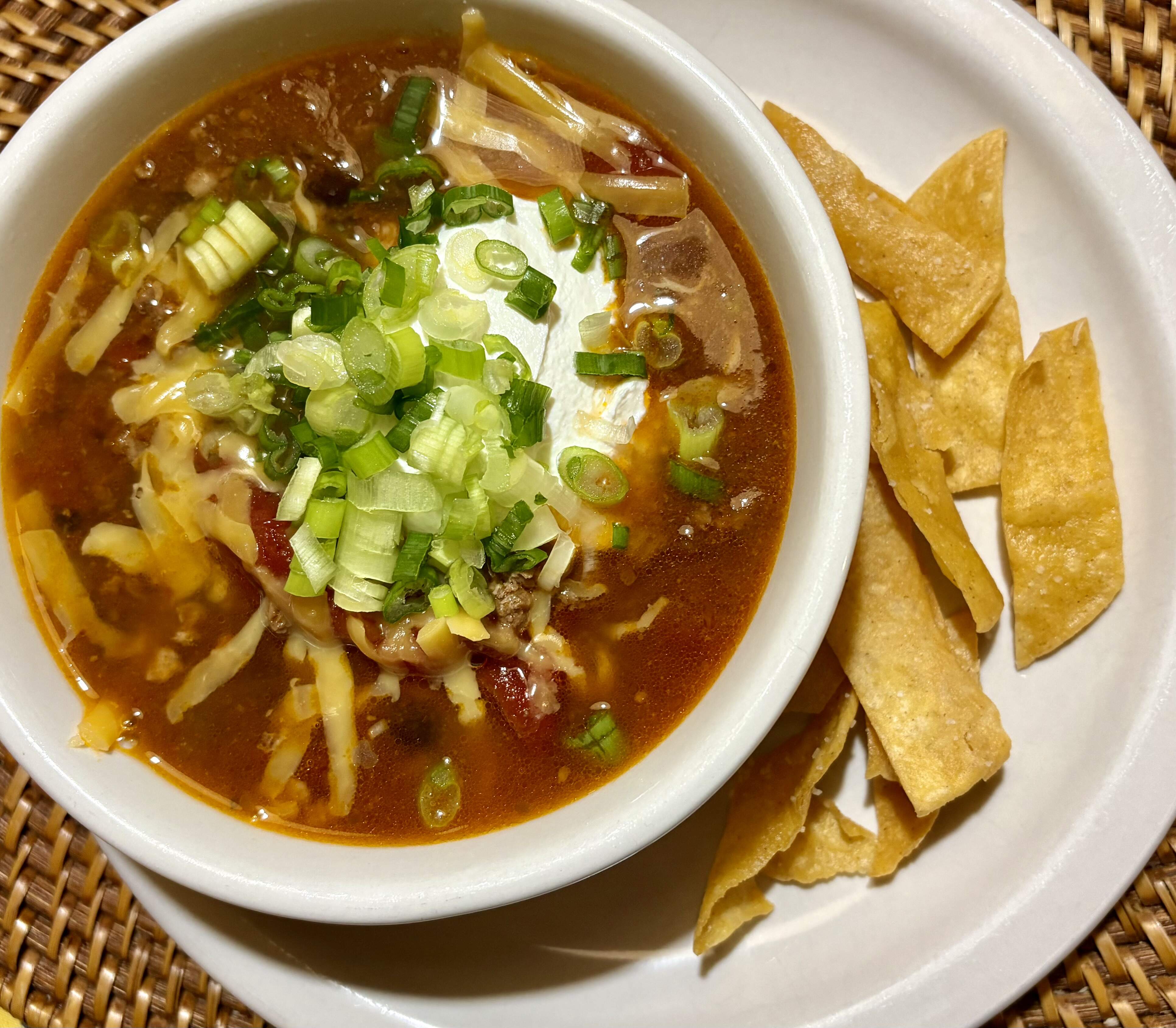 Added that to about 1.5 quarts of chicken stock I made a while ago., the juice of two limes, and a bunch of shredded roti chicken.