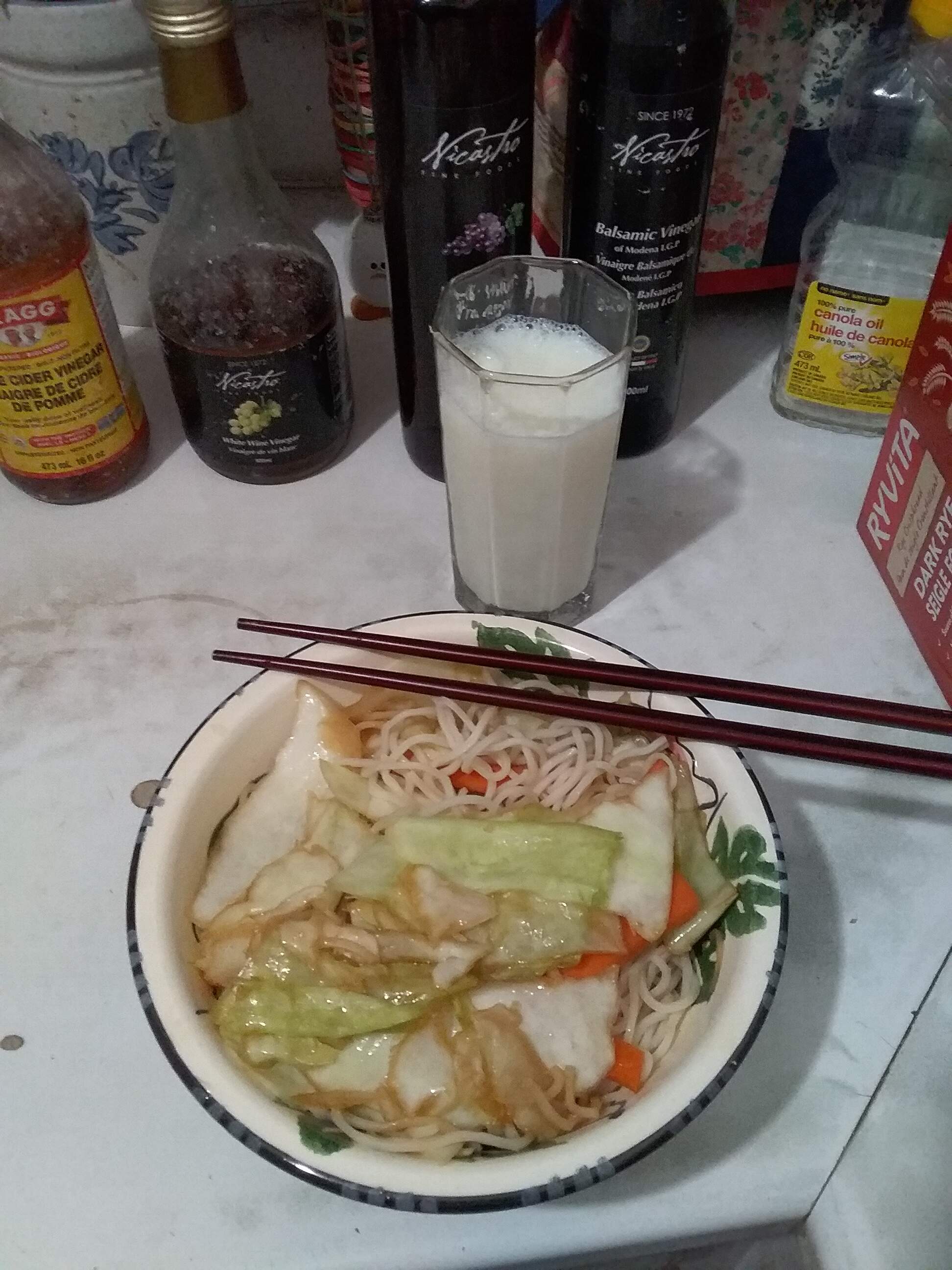 Tonight’s dinner was a cabbage heavy ramen bowl. I was hungry tonight and got a little carried away when I was chopping veggies. I sautéed some julienned carrots and a ton of cabbage then added a little mirin, soy sauce, sesame oil and ginger. I added some noodles then served. I forgot to add Sriracha at serving time