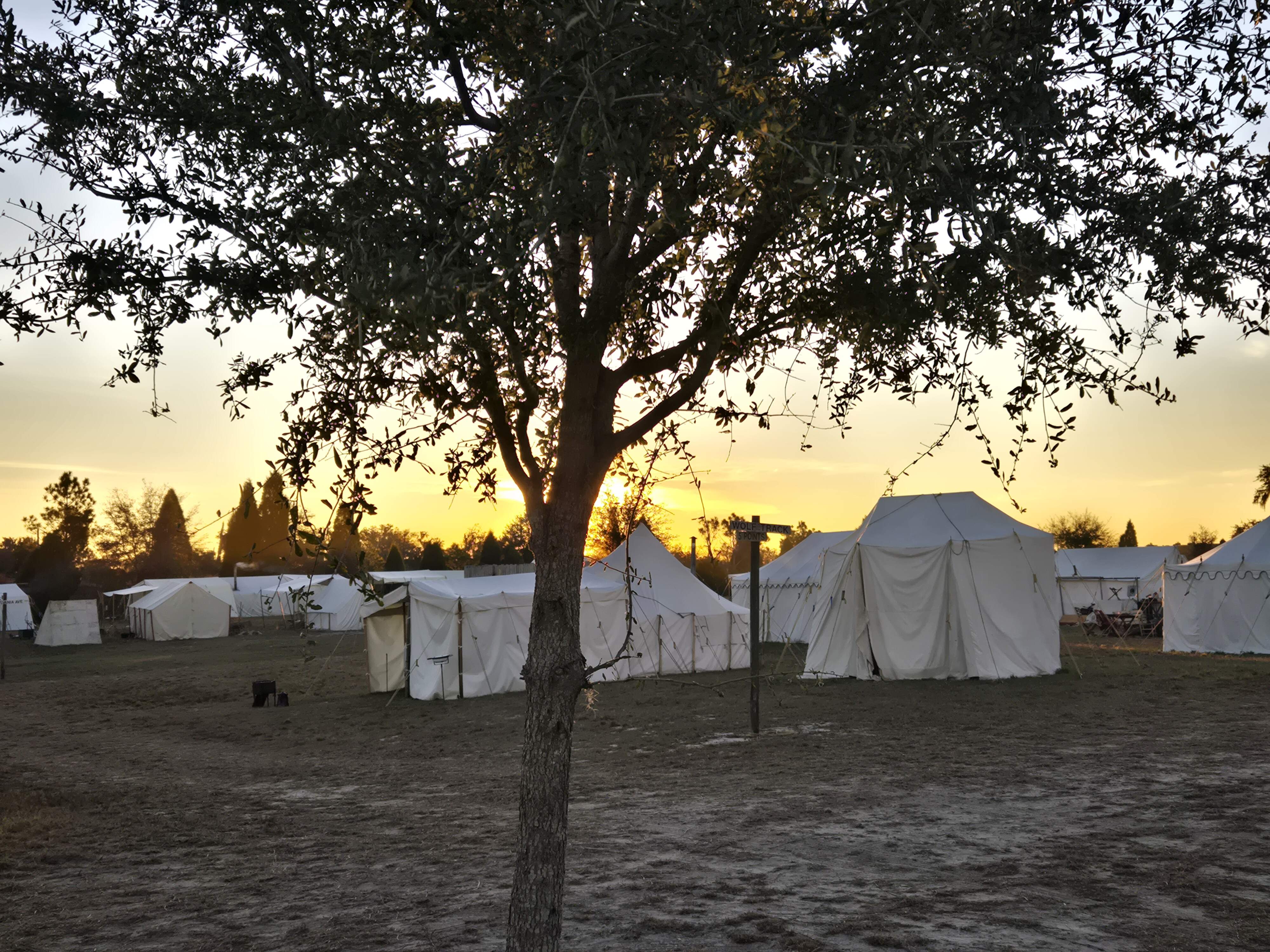 Dawn broke this morning with lovely pale hues, illuminating our camp with the softest golden light. We were well pleased to find neither frost nor ice this morning, though the icy fingers of the North Wind still held us in its grip as we gathered in our tartans for the Highland Games. Both young men and young women competed in a caber toss, and I watched several successful tosses before the cruelly cold wind chased me indoors. Even my woolen arasaidh was feeble defense against the chill. I listened to a fellow resident of the camp weave us stories of the history of the Scots-Irish in Florida…quite a more lengthy and detailed story than most would think possible.