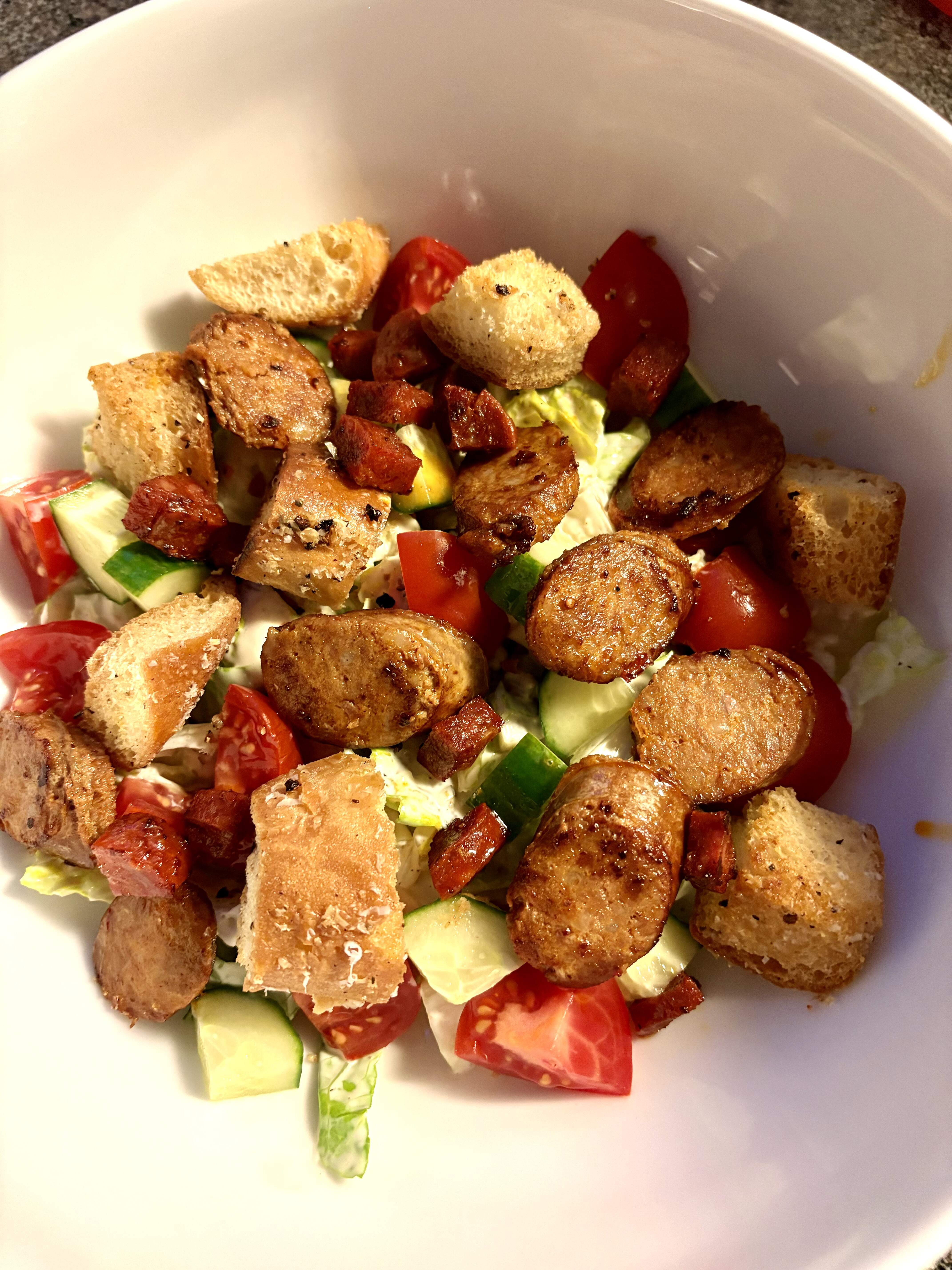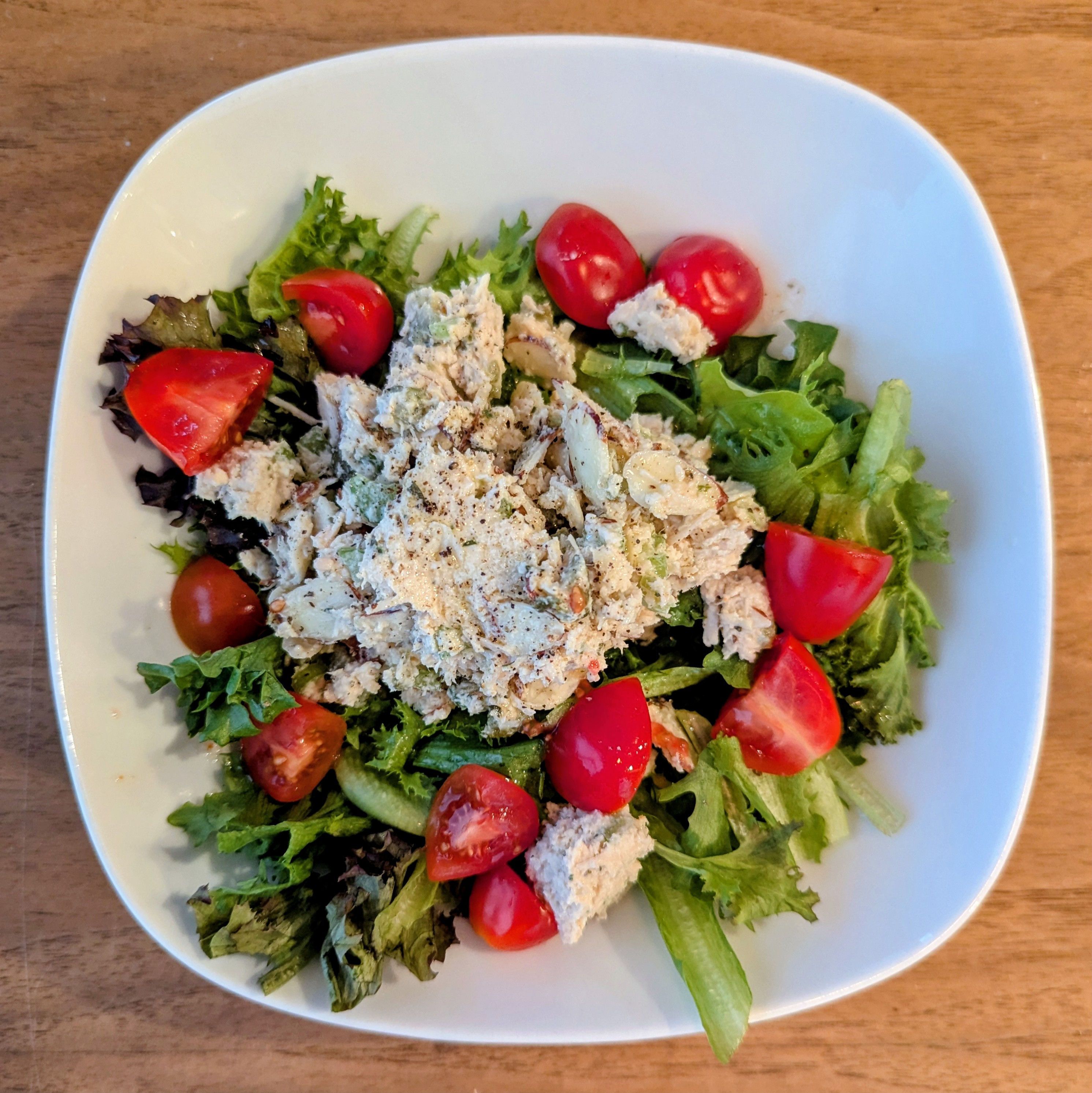 Tonight was catch as catch can between evening activities. I had chicken salad salad, sourdough with avocado, and a tiny bit of leftover pasta marinara. The rest of the fam had leftover lasagna and veg/salad.