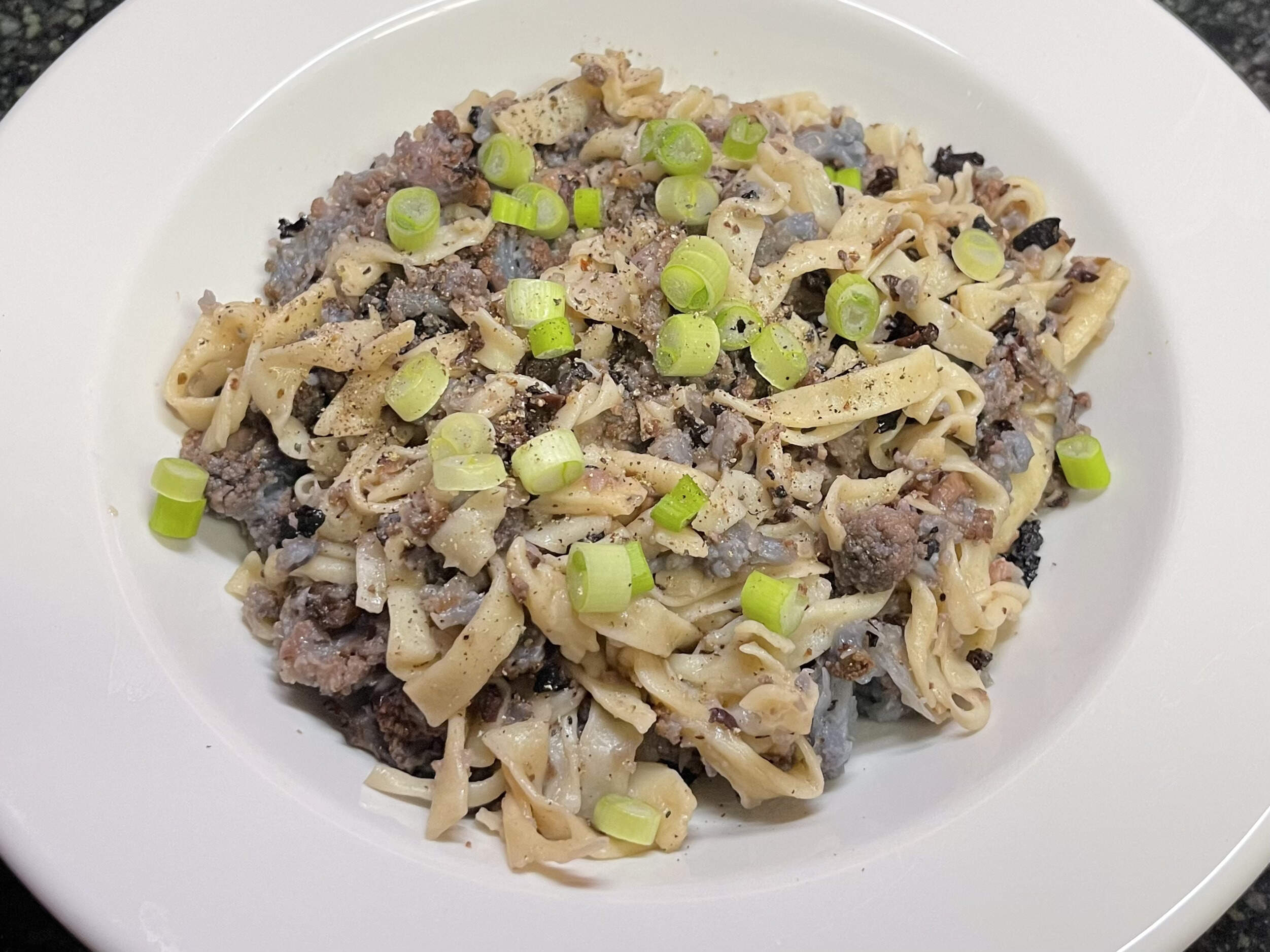 Sourdough tagliatelle (good) with roasted cauliflower/anchovy/olive (less good). I’ve made this before and liked it, according to my notes at least. Trying to figure out what I did wrong this time. I think blanching the cauliflower was a mistake, although it was part of the recipe. Oh, well.