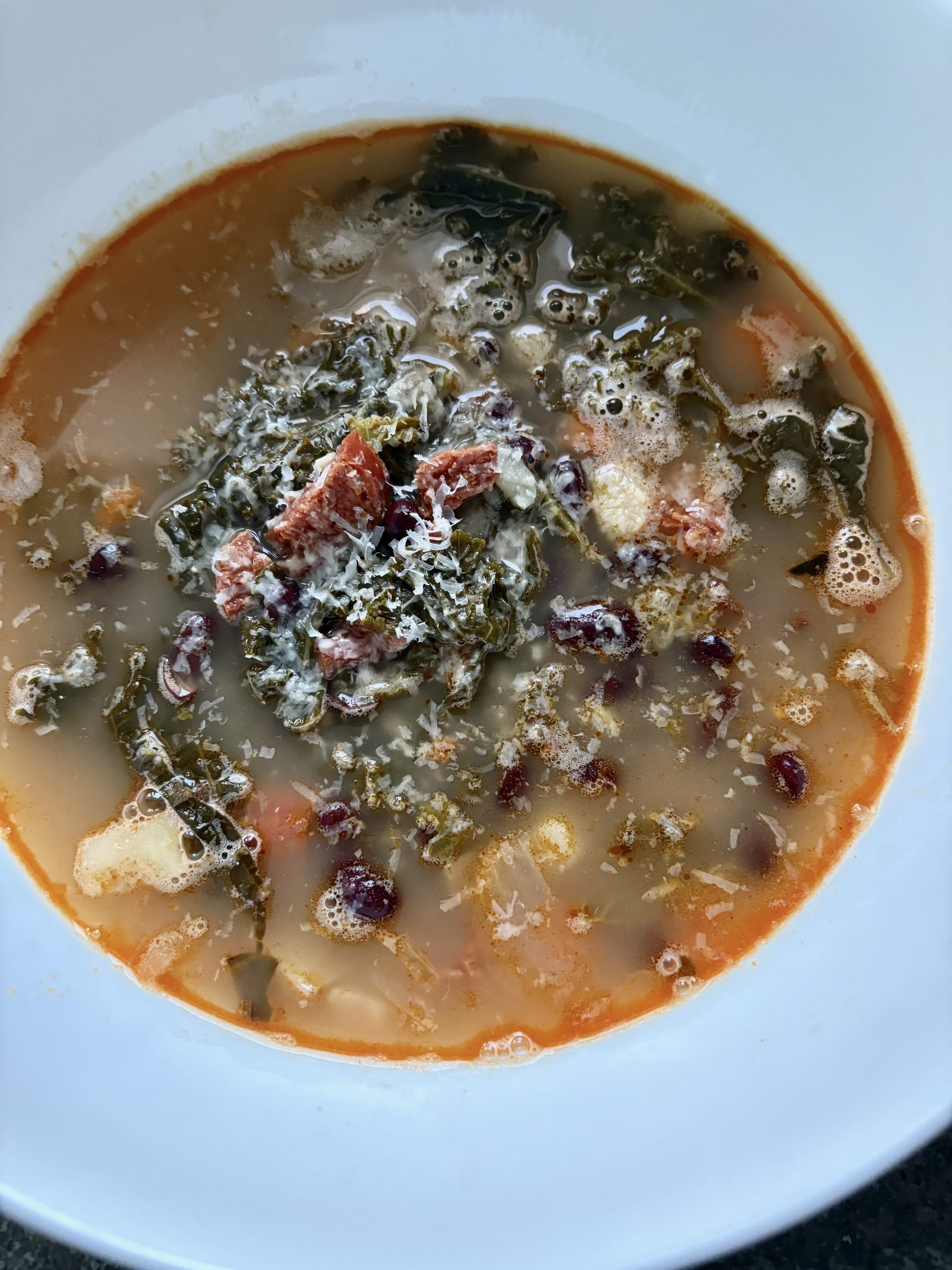 Made a pot of Kale/chorizo/potato and red bean soup yesterday while the snow storm was raging.