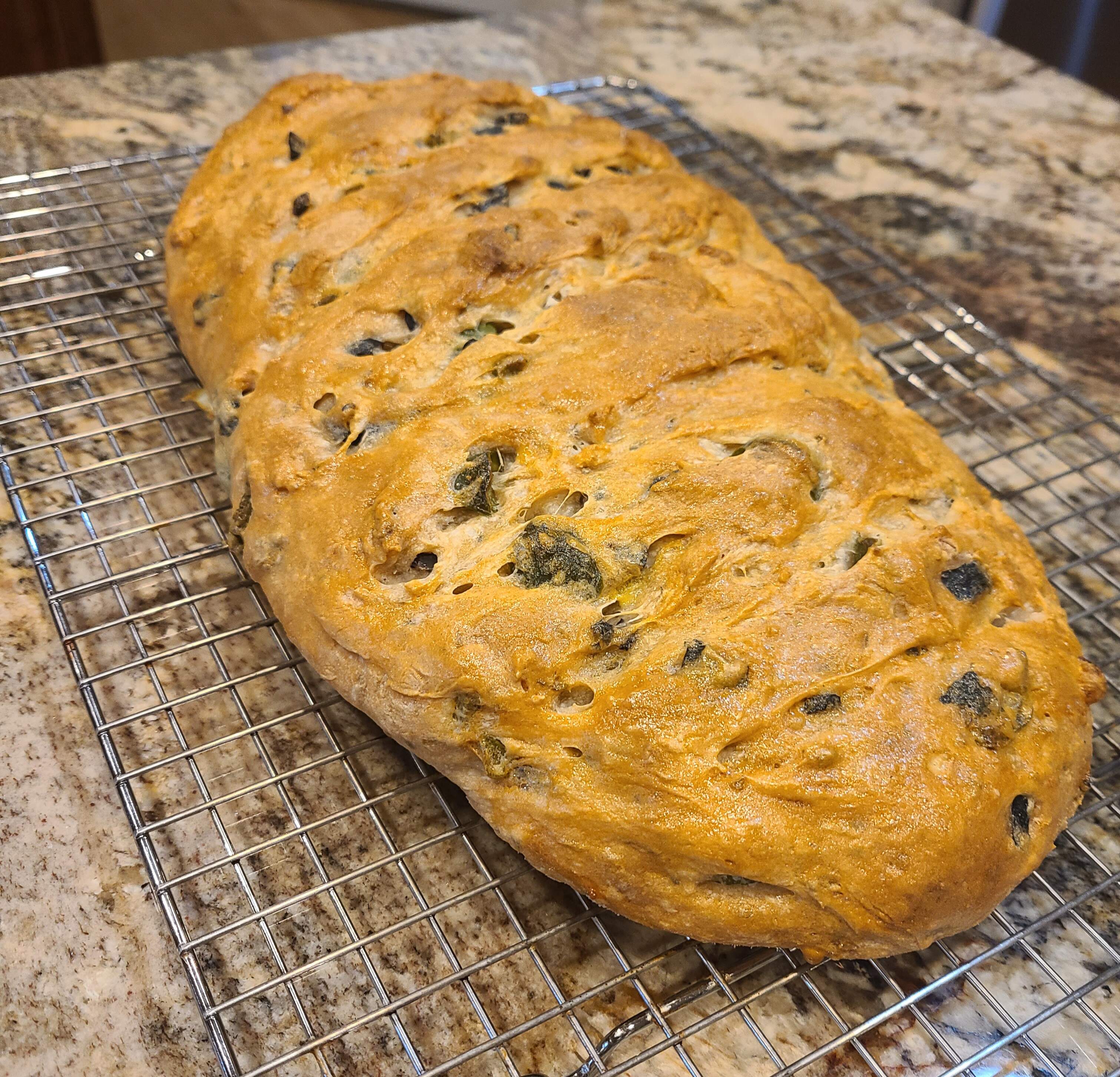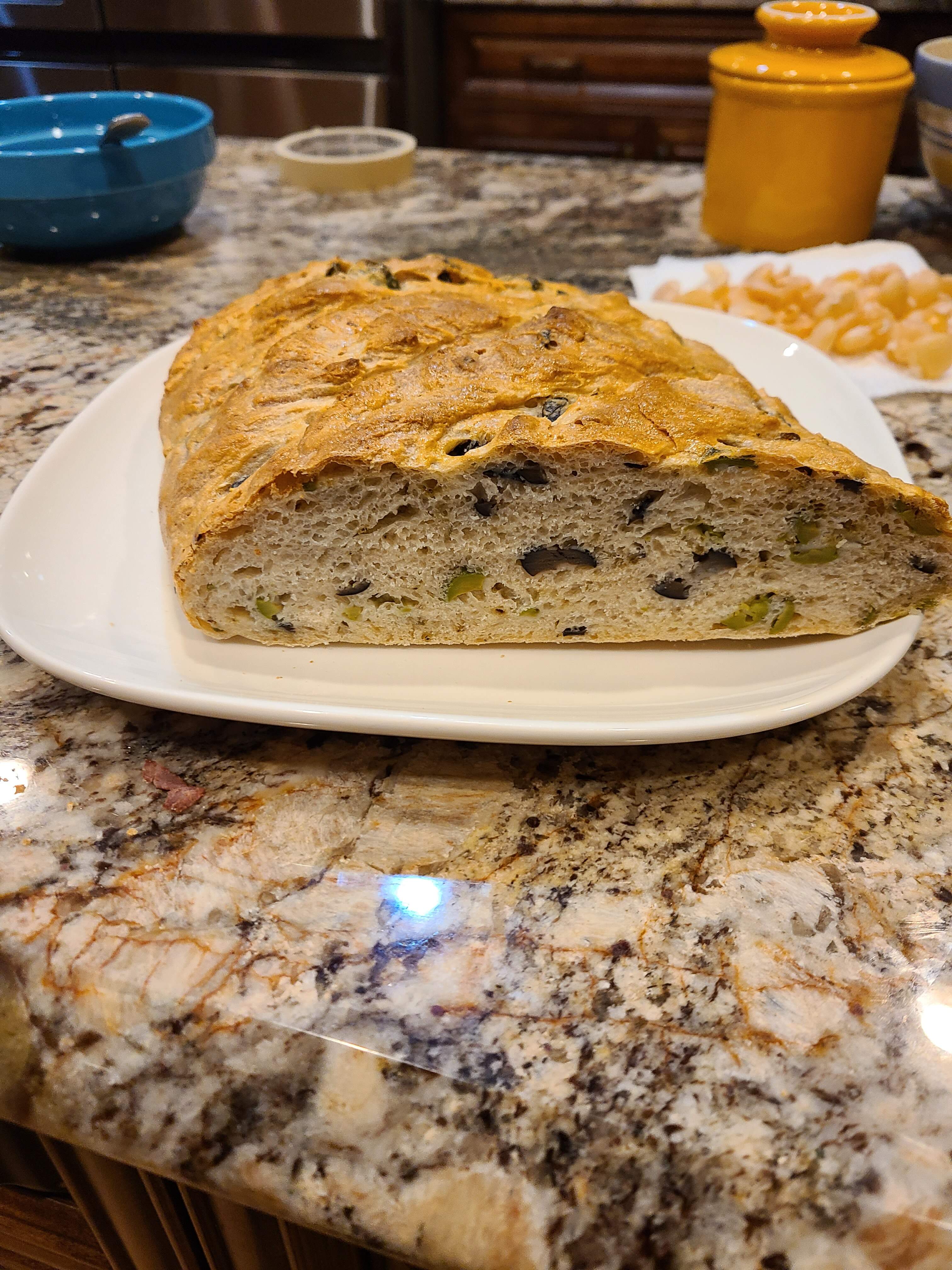 I also made a loaf of olive-garlic bread. It didn’t get much height on it - the dough was really too wet. But it tasted great and everyone loved it. Castelvetrano and black olives, about 50-50.