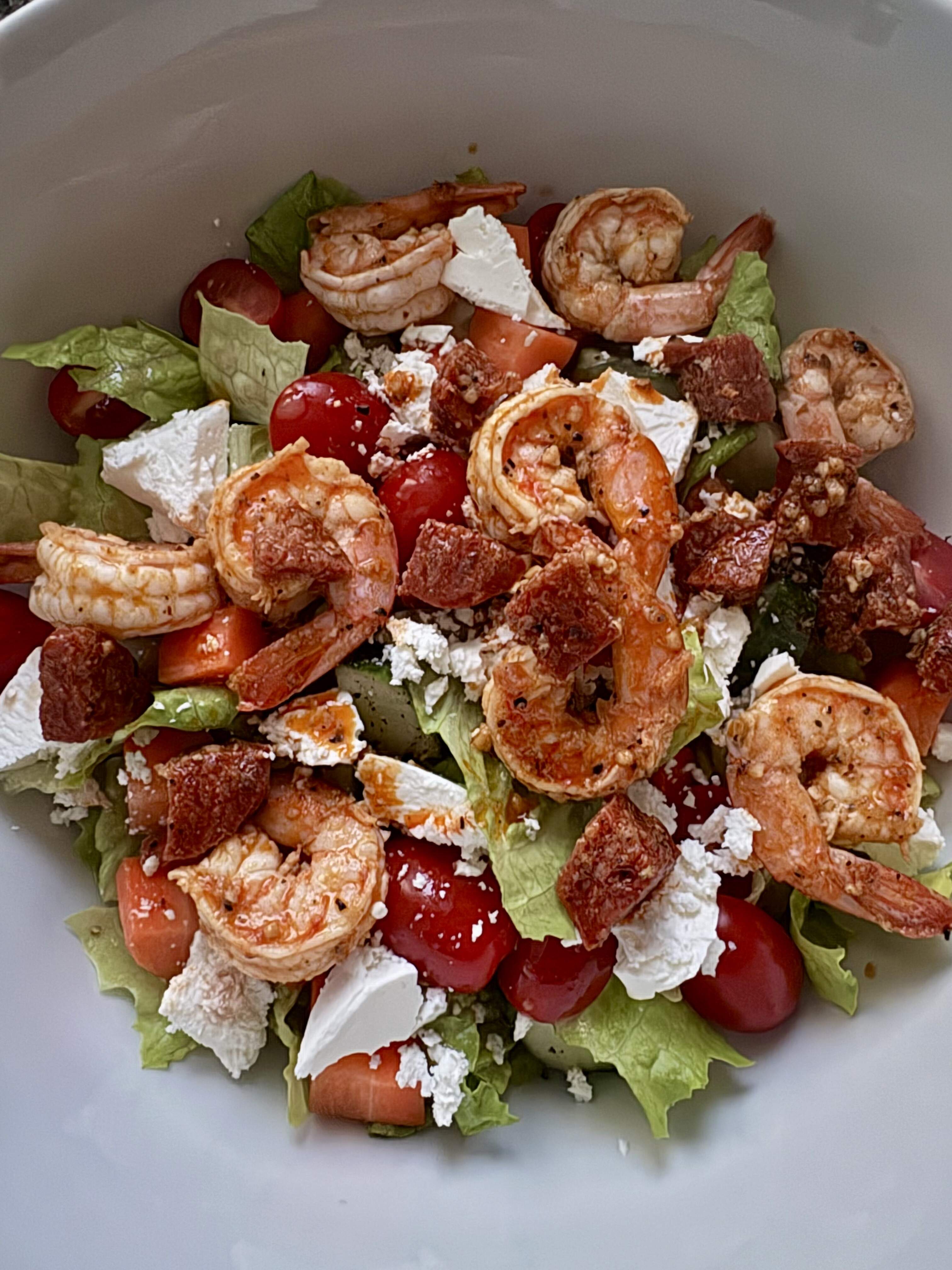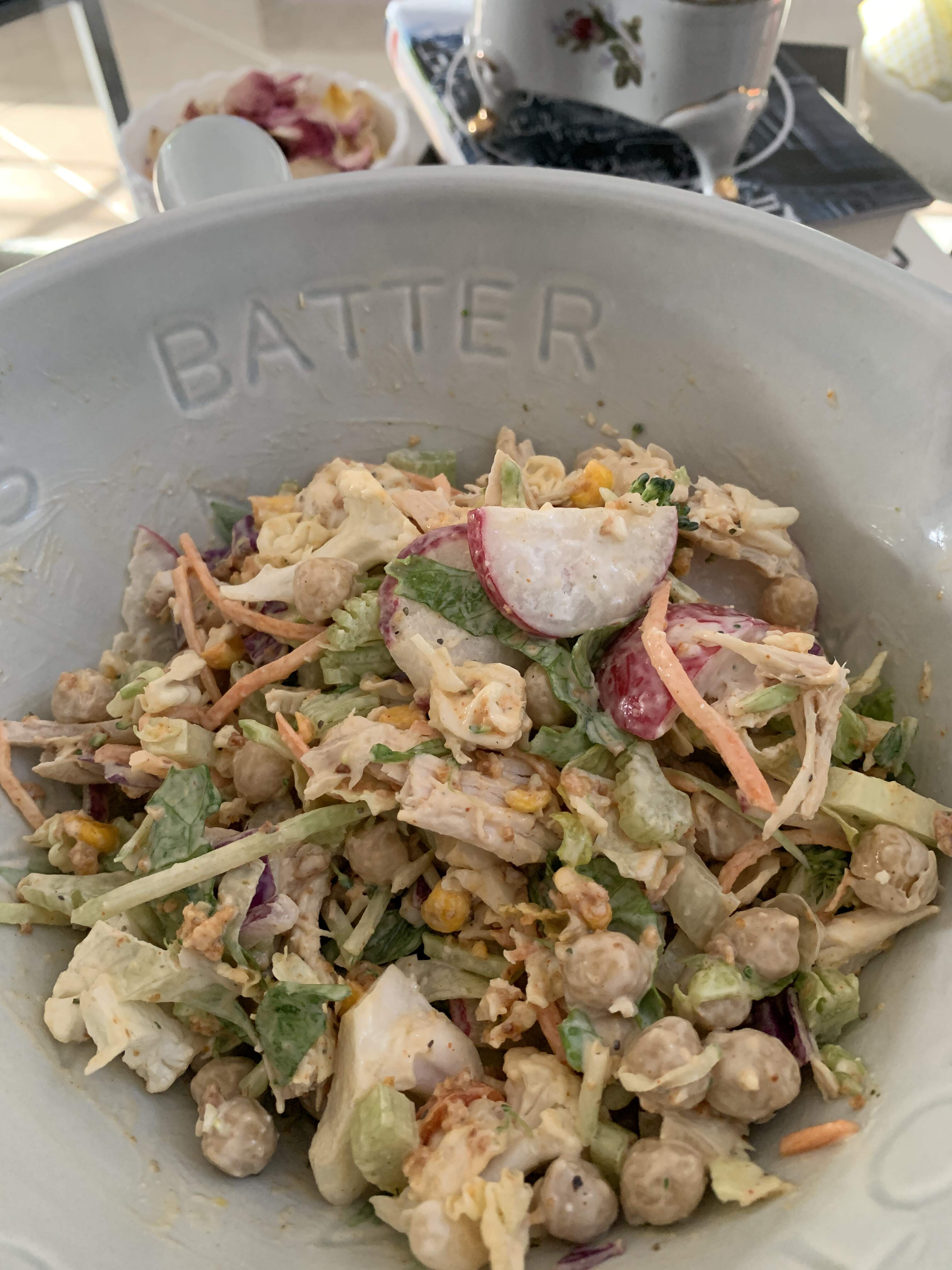 Part of a salad kit, last of my chop chop salad, and some rotisserie chicken dressed with bleu cheese dressing.