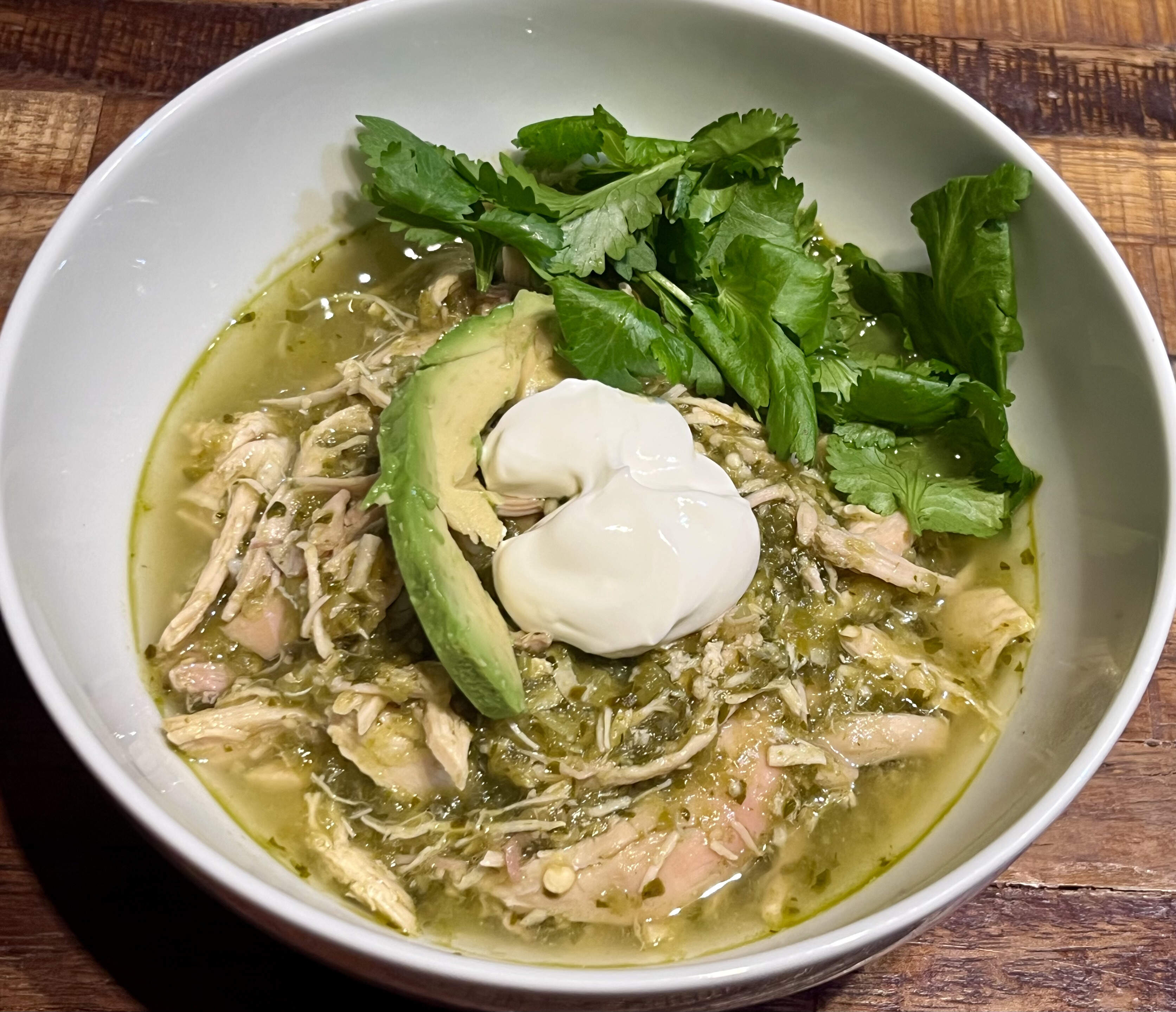 I roasted about a pound of tomatillos, a head of garlic, a couple poblanos & Anaheims, added thawed hatch chiles & TPSTO cilantro & let the FP have at it. All that green beauty was plonked into the liquid gold aka turkey broth I’d made from the xmas day carcass & froze.