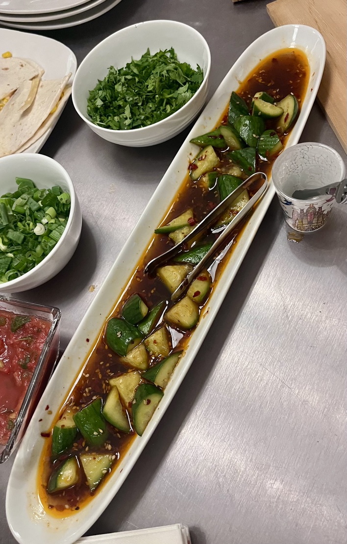 Poker was fun. Our host made fabulous food, as ever. We started with spicy pickled cukes,