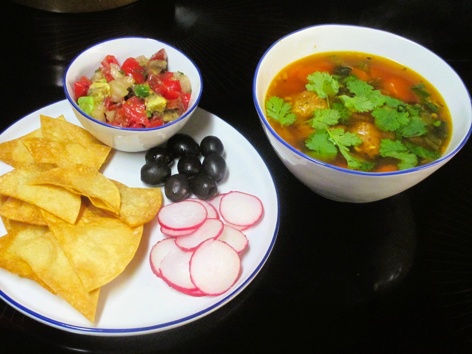 I also made a salad with flavor bombs, Persian cukes, celery & avocado with a soy / balsamic / mustard / olive oil / fresh parsley dressing. Nice combo.