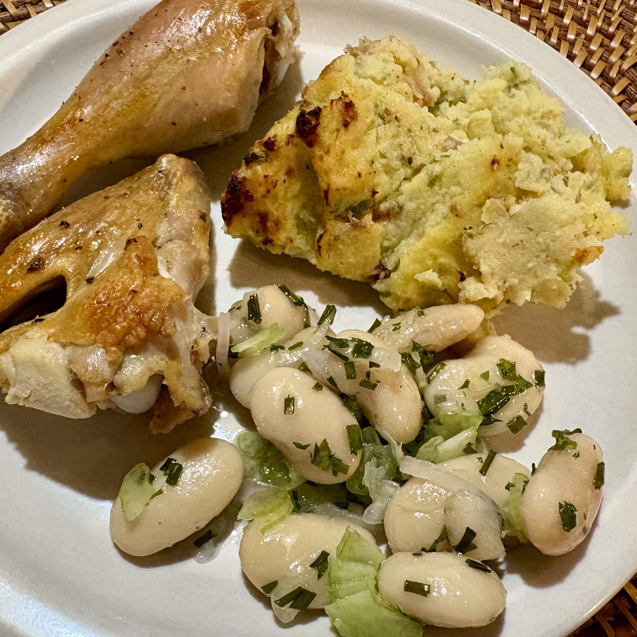 Rewarmed roasted chicken (dark meat only).