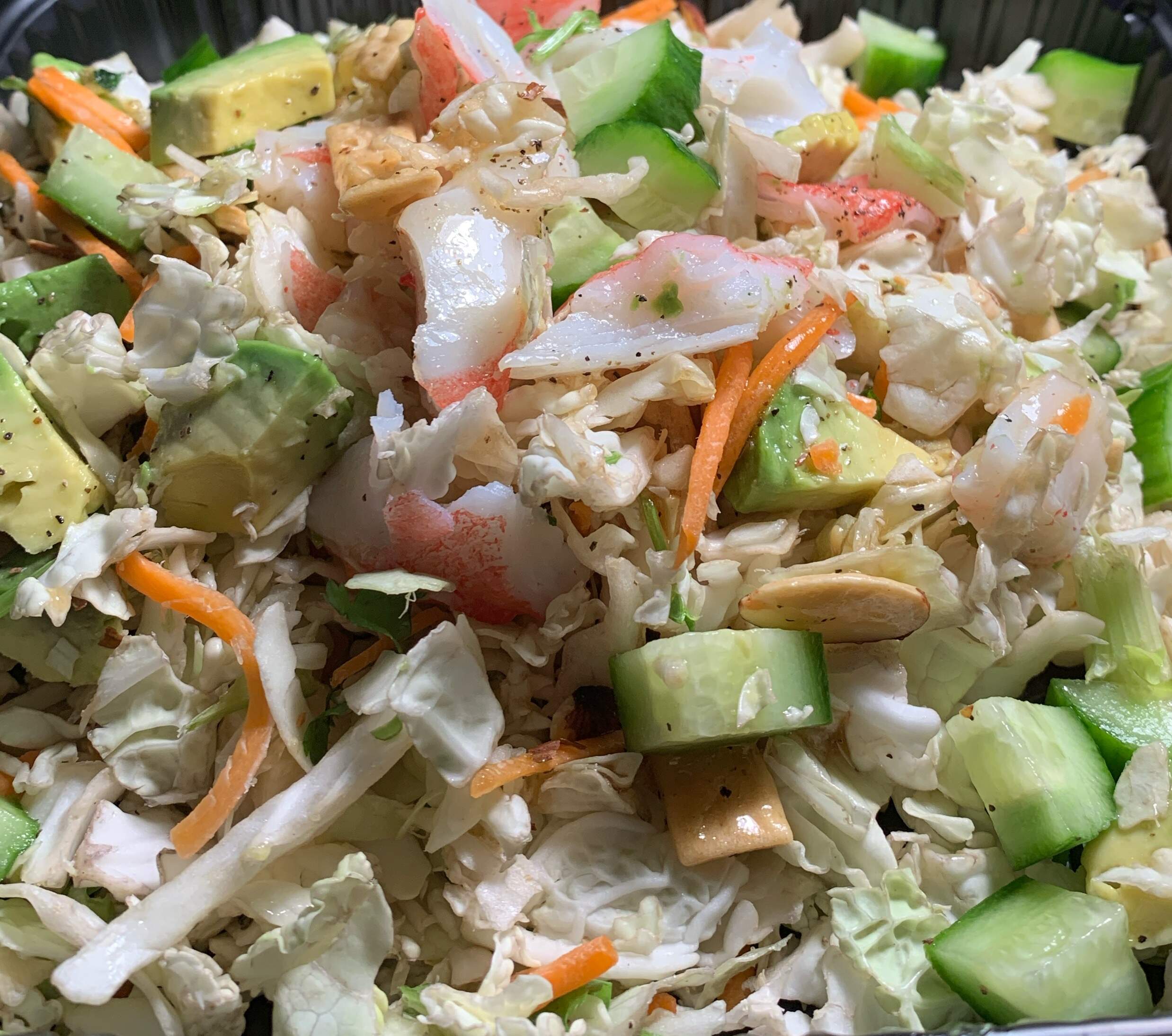 Made a run home to pick up some food since there is a small fridge in my suite. Half an Asian slaw kit with krab, avocado, and cucumber.