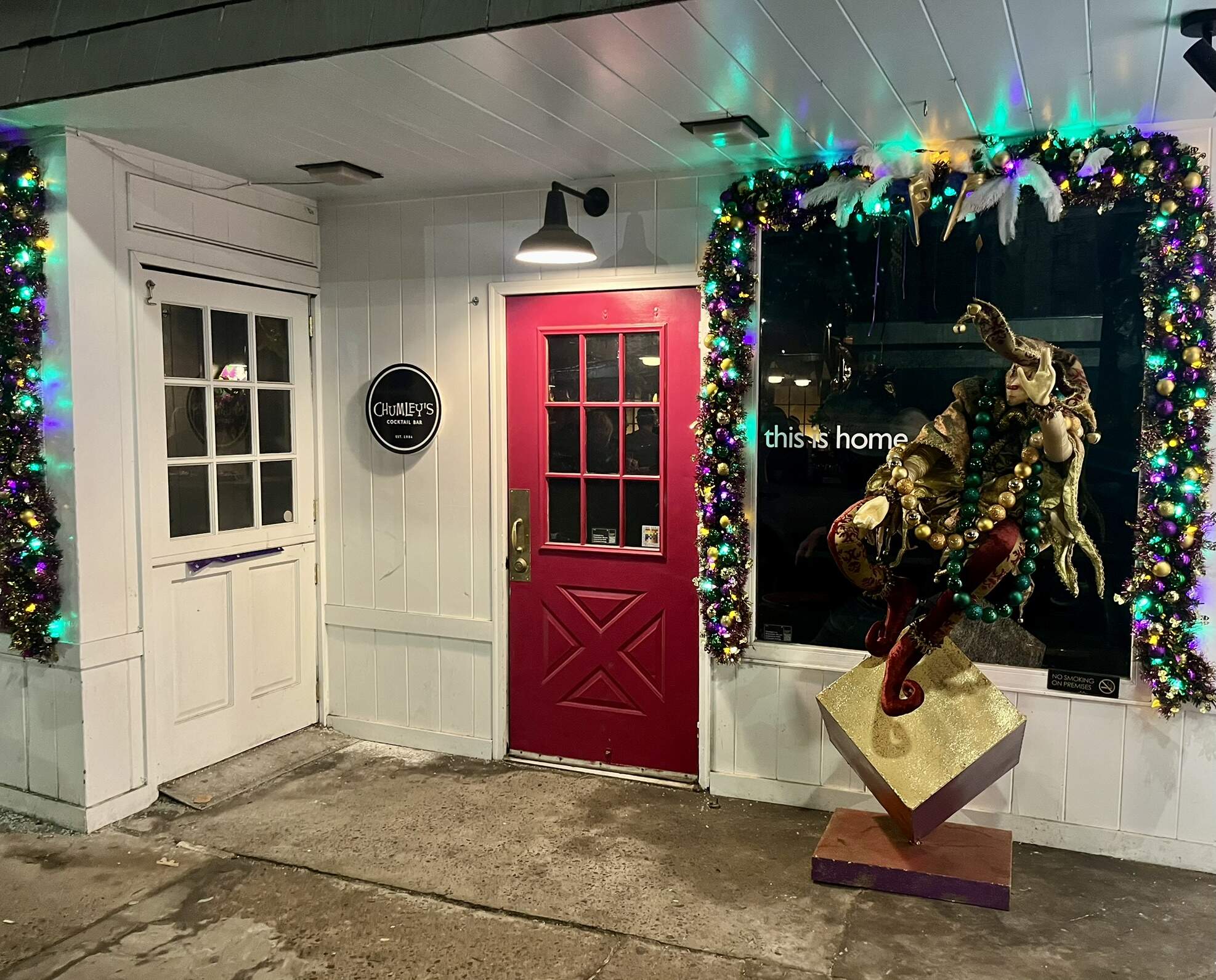 We played our favorite show of the year tonight: our annual Mardi Gras gig at the gay bar. Kinda like playing a home game, since it’s also our preferred watering hole / gathering place for my ladies’ nights — always a happy crowd, fabulous staff, and we sure let the bon temps rouler! The place is always decked out and decorated to the nines! ![]()