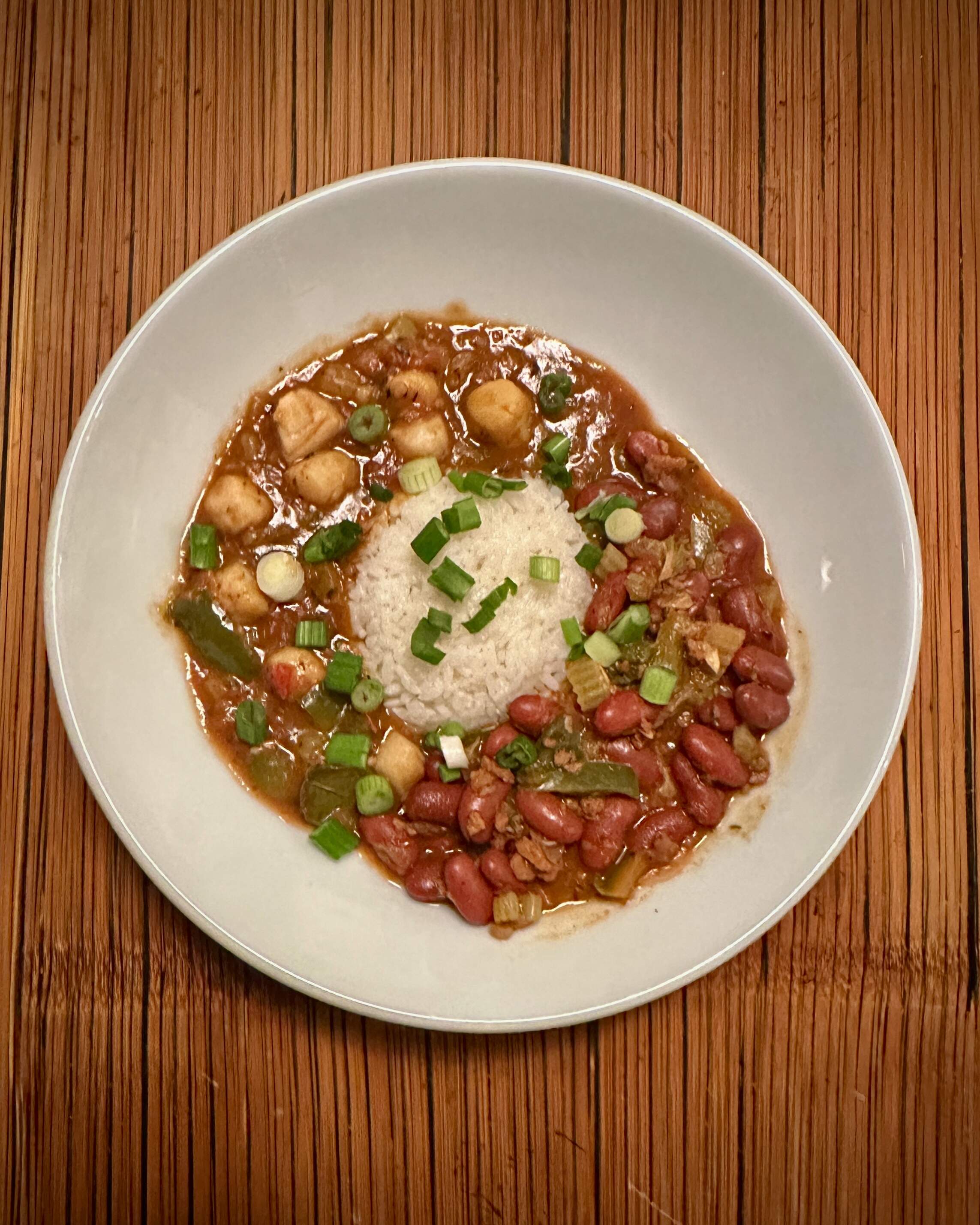 Etouffee and red beans and rice. Mr Bean has been on this weird bay scallop kick and since I could not find crawfish (his favorite) I went with the scallops.