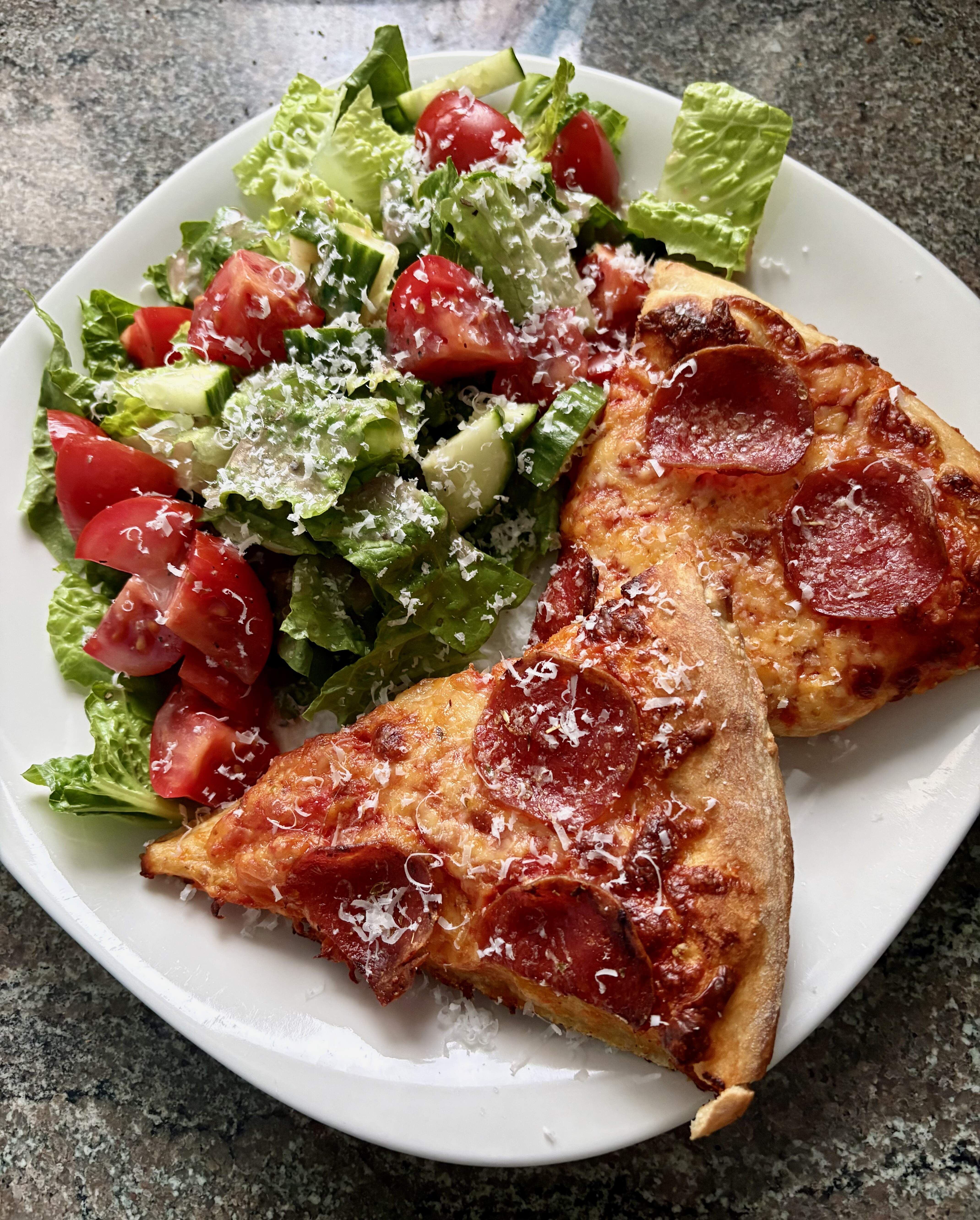 yet ANOTHER cheeboiga by the BF Sunday night, and a giant salad for moi. i told him no more CBs for at least a month.