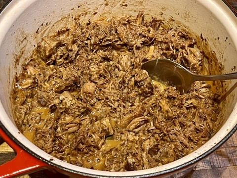 I’d already made the adobo the day before, which was quite the production — well over 2 hours to butcher the shoulder and brown the chonkz, but I’d heard it’s better the next day.