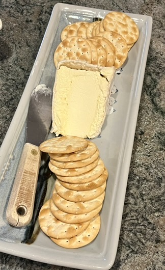 We had our big city friends & our hermit friend over for a Filipino feast last night: pork adobo, garlic rice, baby bok choy, and toasted coconut ice cream for dessert. Our guests brought deviled eggs & St. André with crackers.